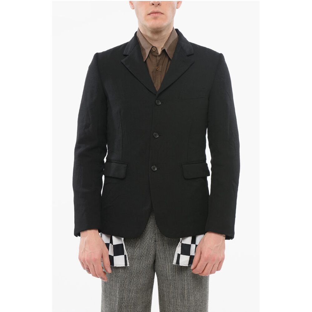 Comme Des Garçons BLACK Double-layered Blazer with Checkered Detail