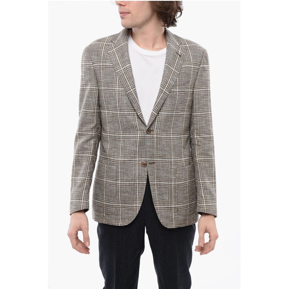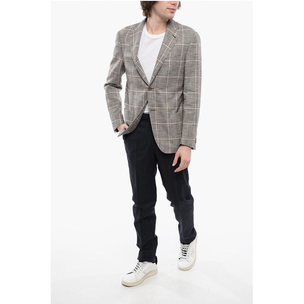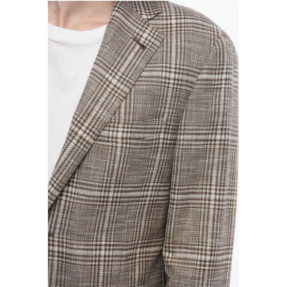 Corneliani Blended Linen Blazer with Check Motif