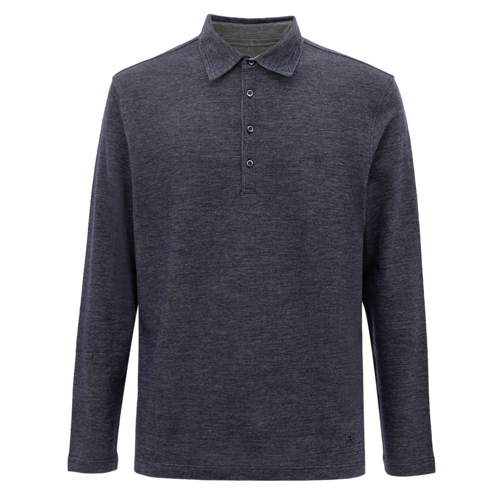 Corneliani Long-Sleeve Polo Shirt in wool and cotton, featuring a classic four-button collar and a small tone-on-tone logo at the bottom.