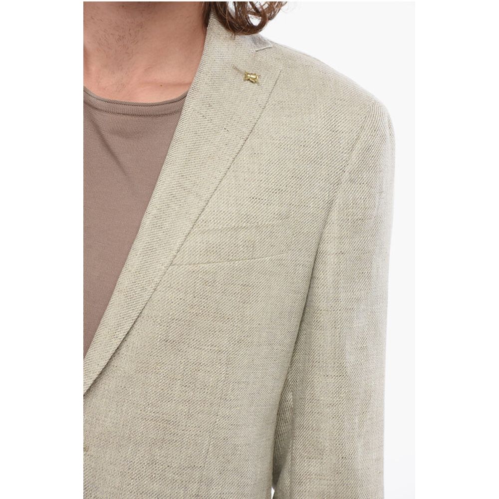 Corneliani CC Collection Blended Linen RIGHT Blazer with Irregular Text