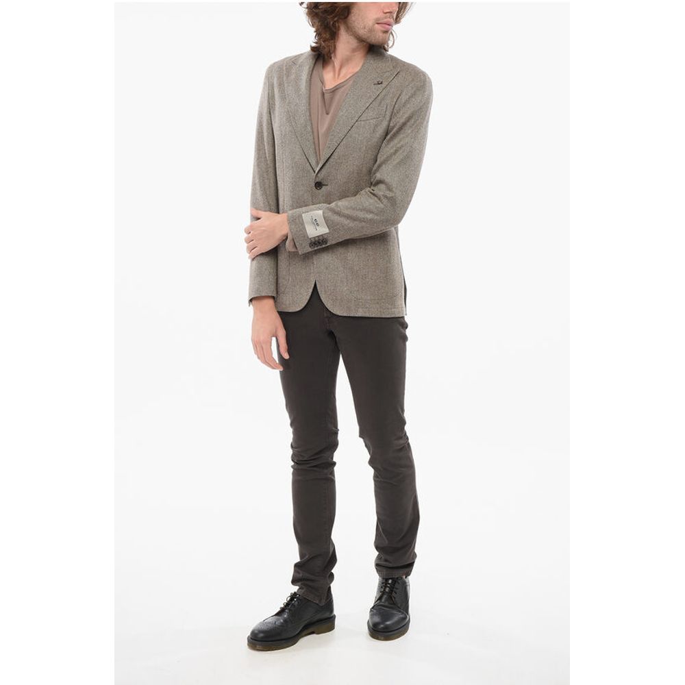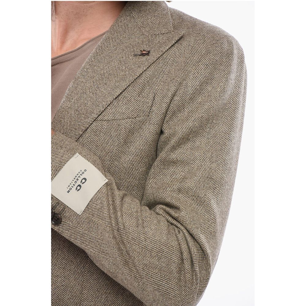 Corneliani CC Collection Herring Bone Motif Blazer with Peak Lapel