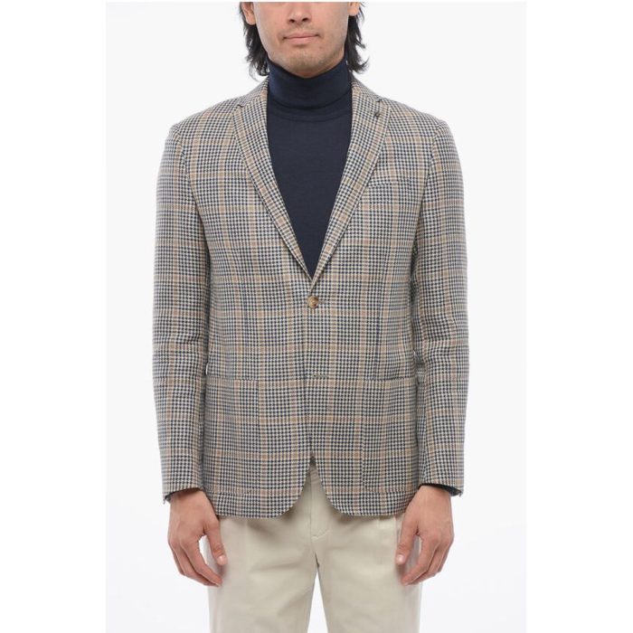 Corneliani CC COLLECTION Linen-blended Blazer with Checkered Motif