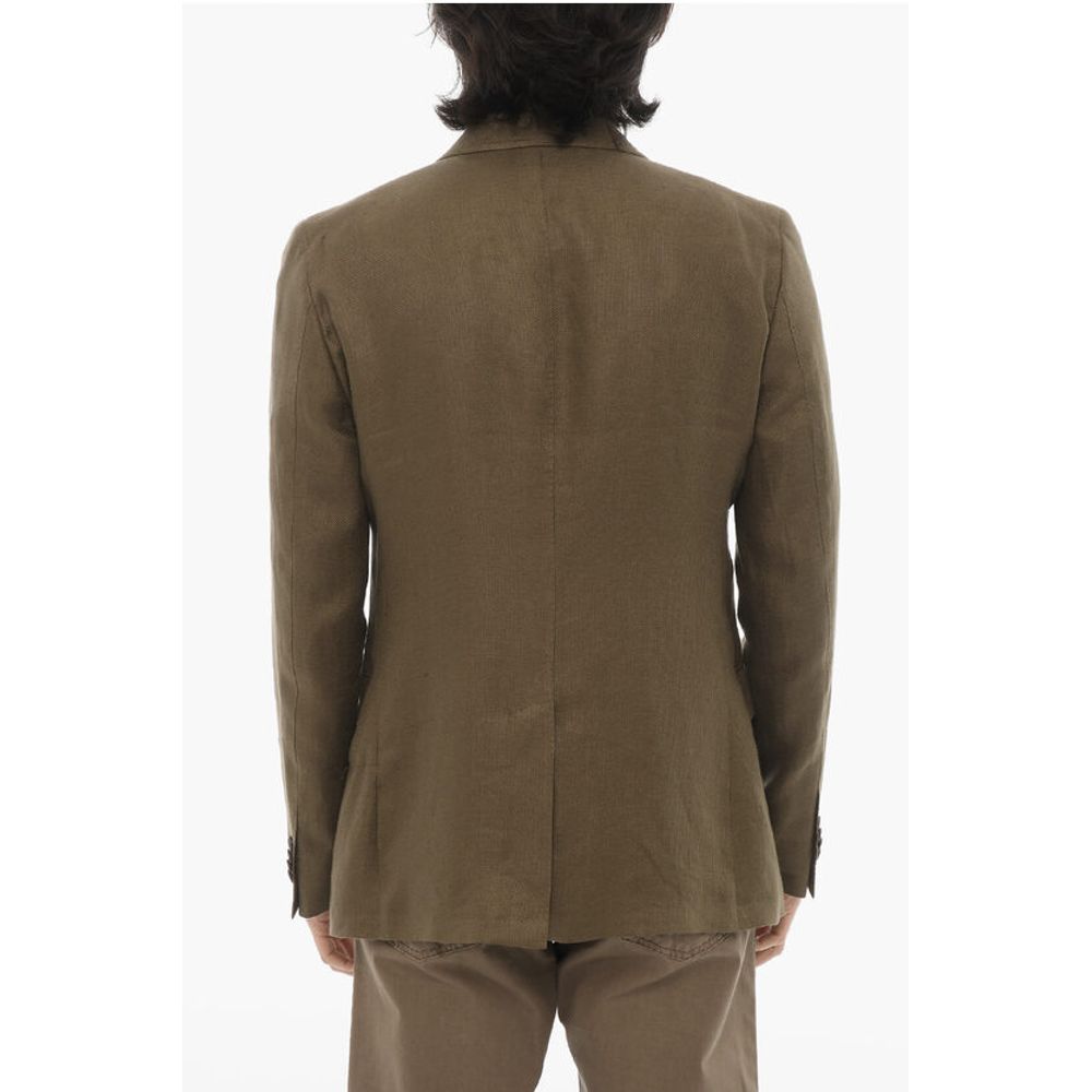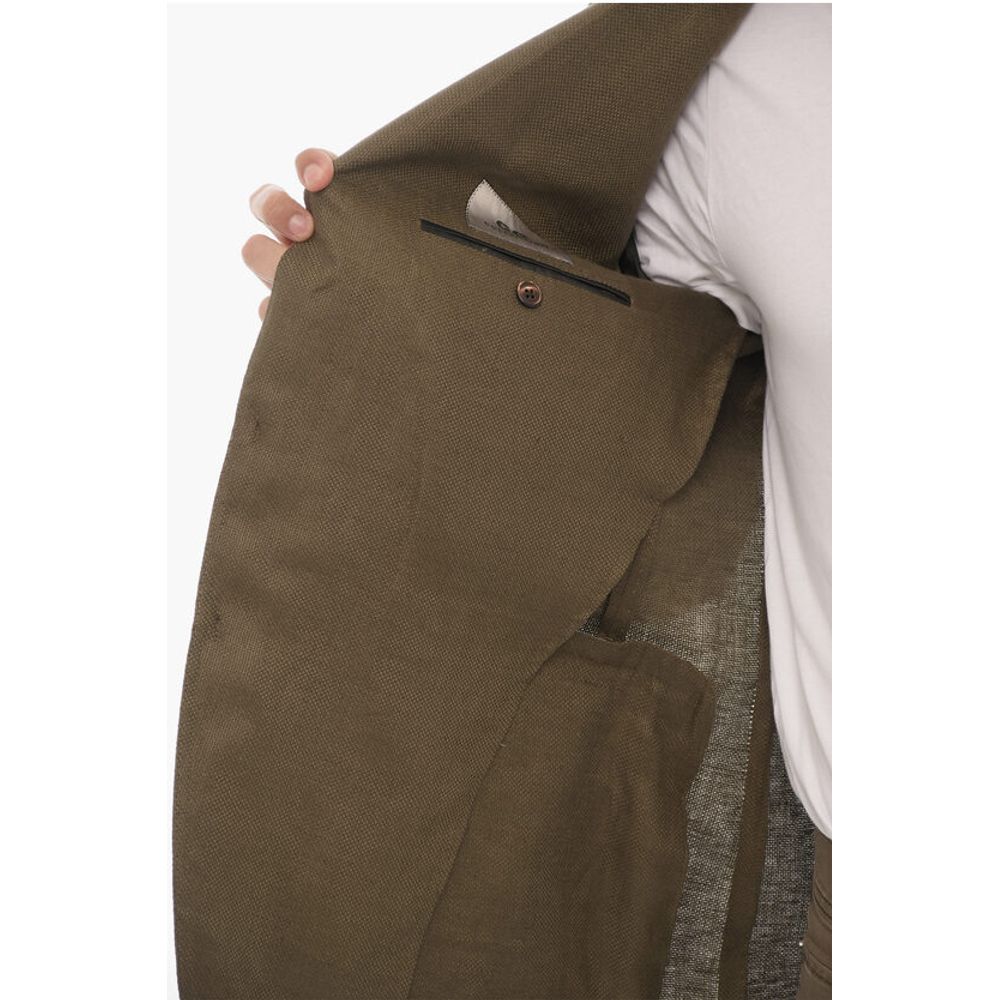 Corneliani CC COLLECTION Linen Half-lined Blazer with Hopsack Motif