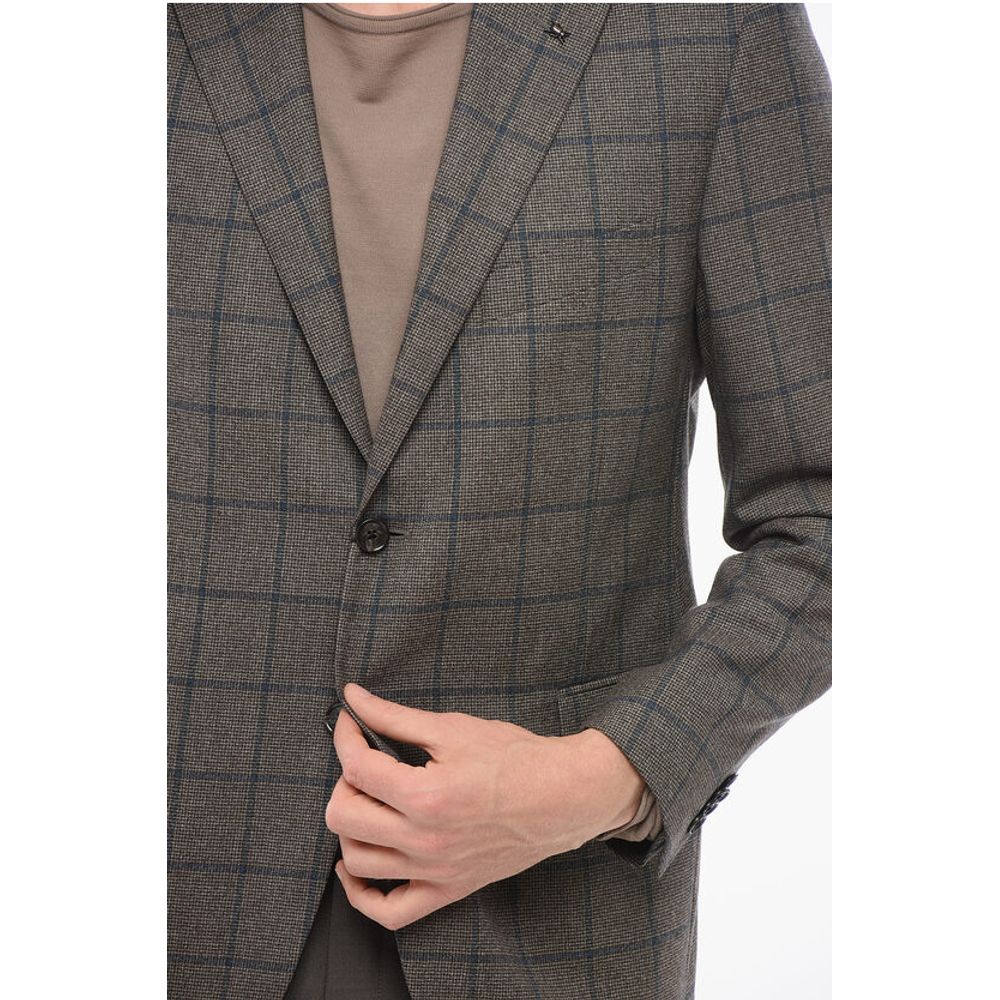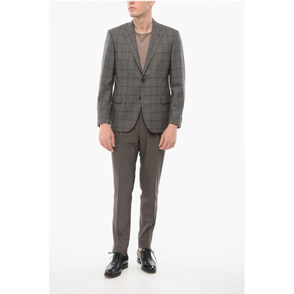 Corneliani Checkered Motif Wool Single Breasted With Flap Pockets