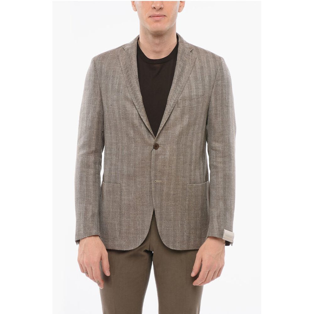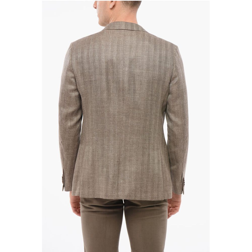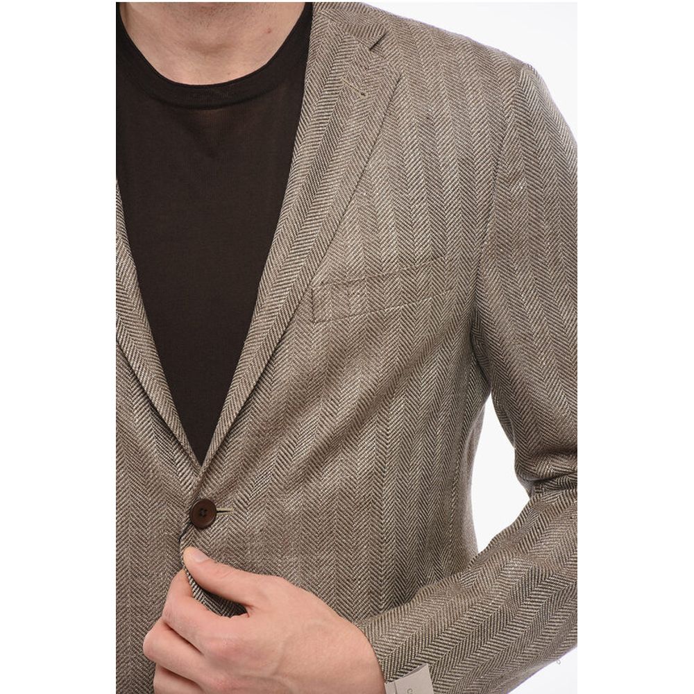 Corneliani Herringbone Motif Linen Blend GATE Single Breasted Blazer
