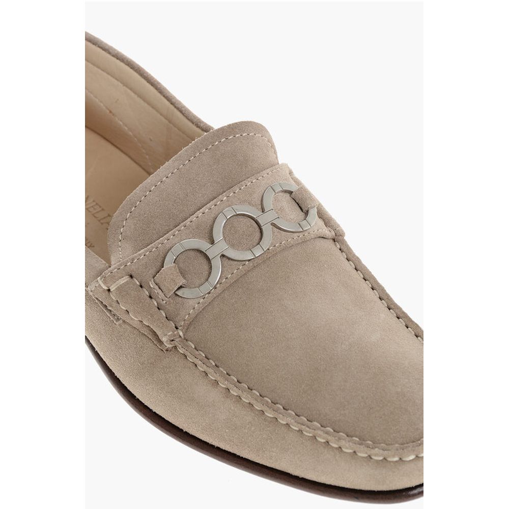 Corneliani ID Suede Bit Loafers with Silver-Tone Detail
