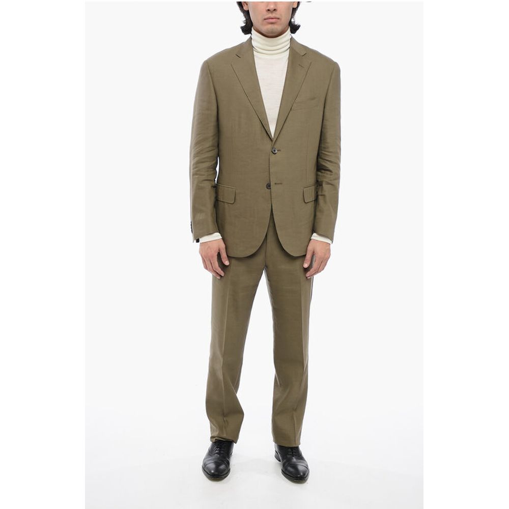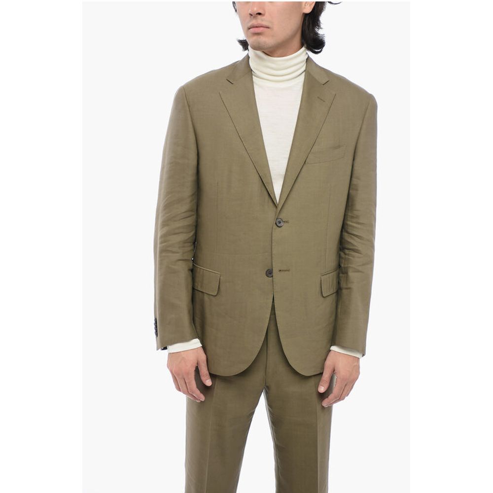 Corneliani Linen Blend Side Vents Notch Lapel LEADER SOFT 2-Button Suit