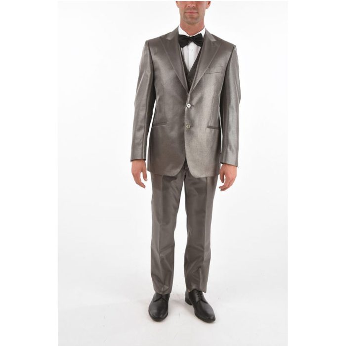 Corneliani Lurex 3-piece Waistcoat Suit with Peak Lapel