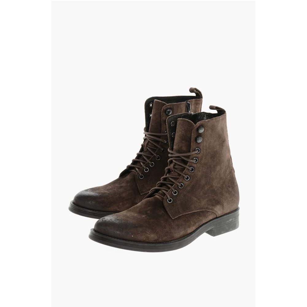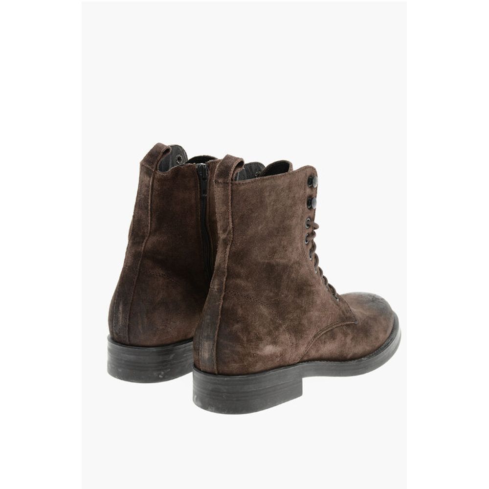Corneliani Solid Color Suede Ankle Boots with Side Zip
