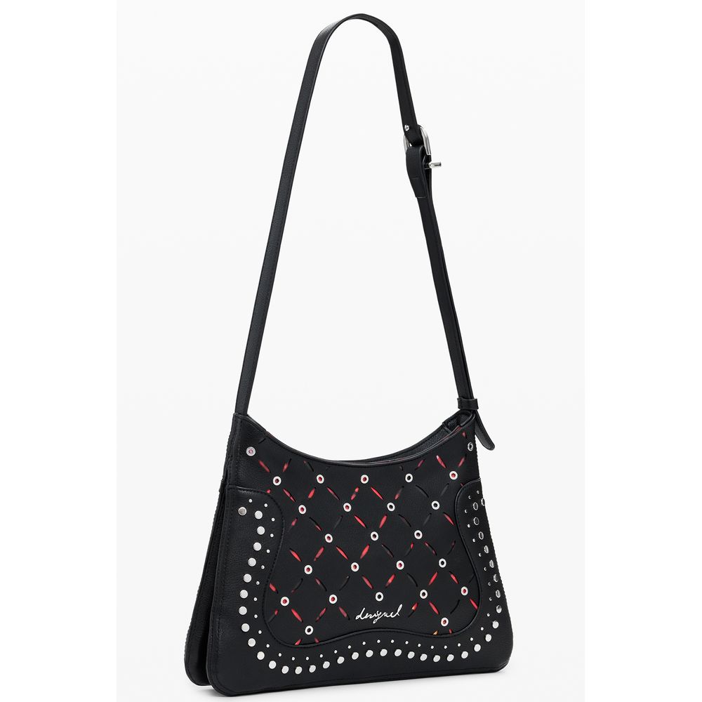 Unleash your flair for the dramatic with the DESIGUAL ‘YANKEE MANAOS’ bag, a versatile accessory designed for the bold and confident. This stylish carrier is accentuated by contrasting details and studs, offering an adjustable shoulder strap for comfort. Practicality meets high fashion with its two compartments, a secure central pocket, and an additional internal pocket, all secured with a savvy combination of zip and magnet closure. Emblazoned with the iconic DESIGUAL logo, this is more than a bag—it’s a statement.