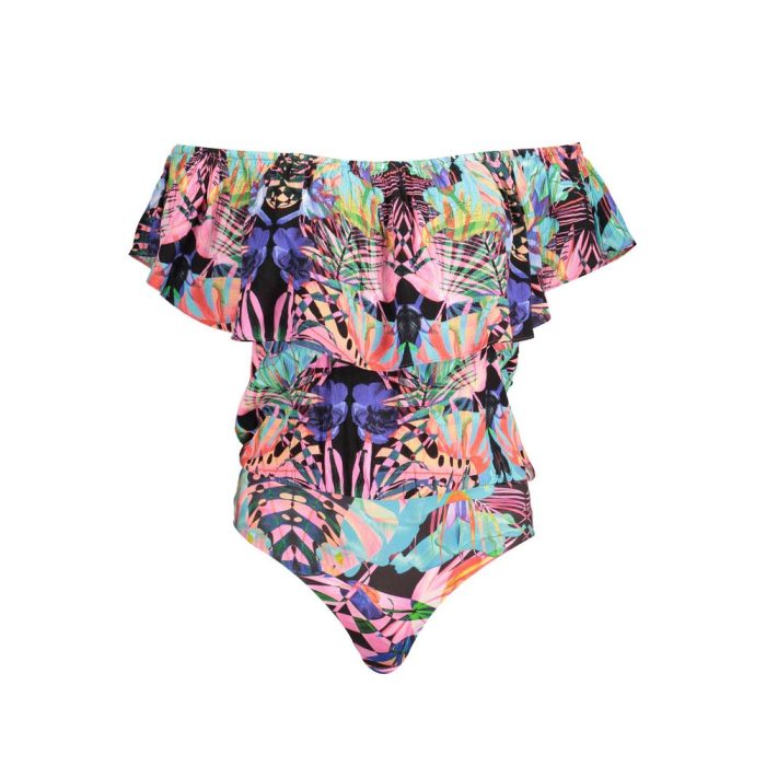 Unleash your fashion-forward spirit with DESIGUAL’s striking sleeveless bodysuit. Crafted with a blend that moves with you, featuring an alluring flounce and contrasting details that demand attention, this piece is the epitome of bold sophistication. Perfectly pairing with your favorite statement pieces, it’s an essential addition to your trend-setting wardrobe. Embrace the allure of DESIGUAL—where glamour meets comfort.