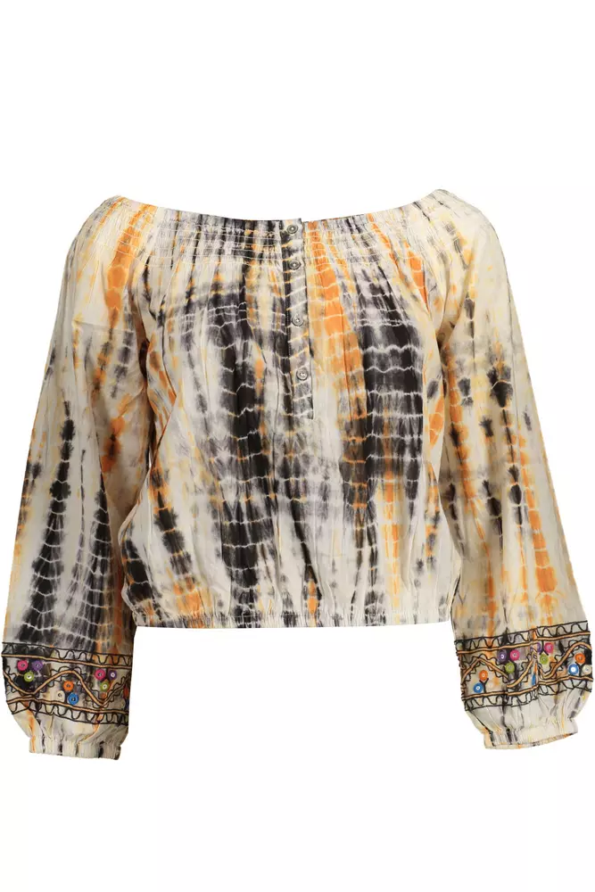 Elevate your wardrobe with the distinctively vibrant DESIGUAL long-sleeved t-shirt. Flaunting contrasting details and the signature DESIGUAL logo, this piece infuses a touch of eclectic charm. Crafted with care in India, the 100% cotton material promises both comfort and style. Step into the bold and trendy side of fashion, sporting a beige hue that complements an array of palettes – perfect for making a statement wherever you go.