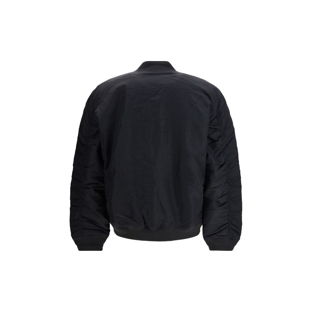 The reversible J-Held padded nylon Bomber Jacket by Diesel is crafted from technical fabric made with certified recycled nylon fibers, reflecting the brand’s commitment to sustainability. Lightly padded for warmth and comfort, it features subtly ruched stitching along the sleeves for added texture and movement. The tonal embroidered Oval D logo on the back adds a signature Diesel touch. A modern and versatile piece, perfect for embracing the season with a bold yet refined attitude.