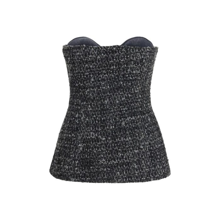 The T-Orset Top by Diesel is crafted from tweed fabric and stands out with its elegant sweetheart neckline that enhances the silhouette. The sleeveless design adds a modern and feminine touch, while the tweed texture brings depth and character to the piece. Perfect for creating sophisticated looks with a contemporary edge, it pairs effortlessly with tailored trousers or structured skirts.