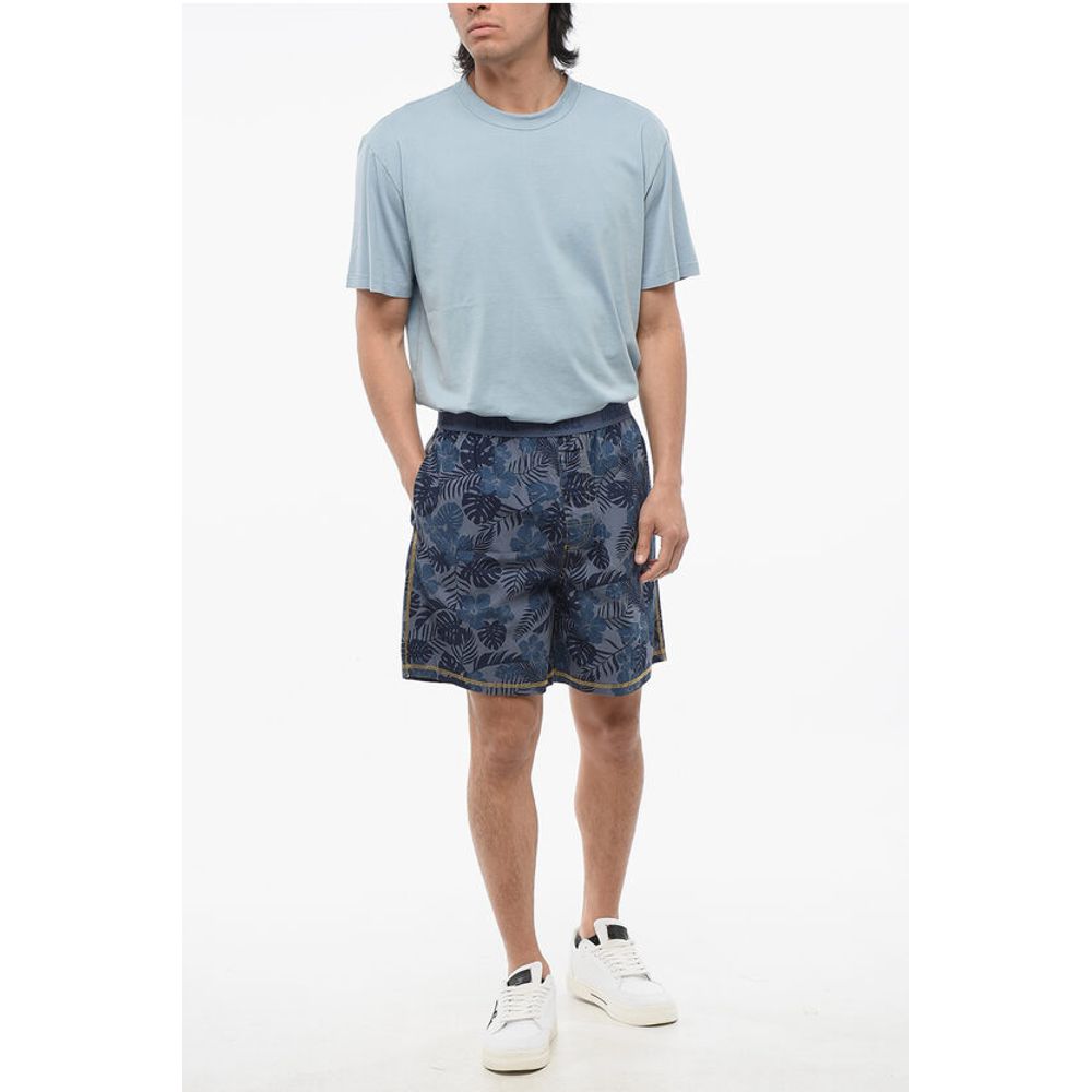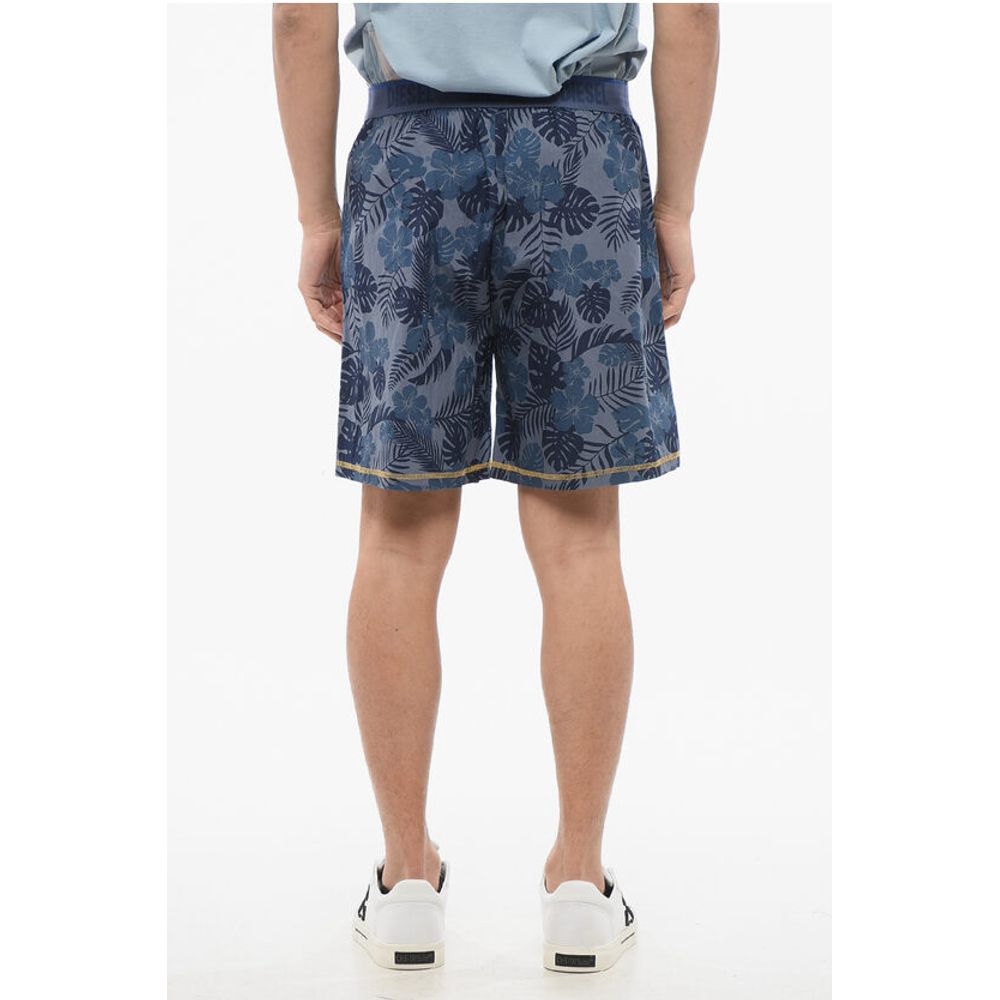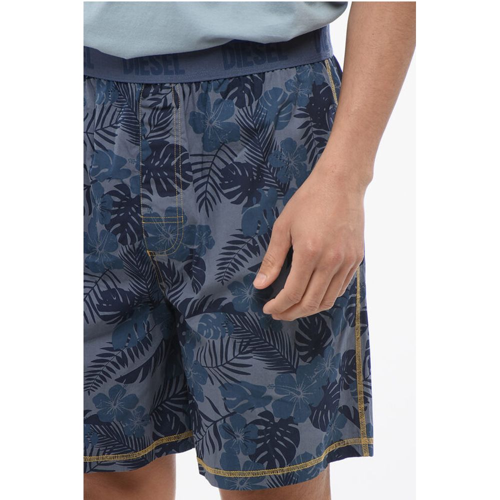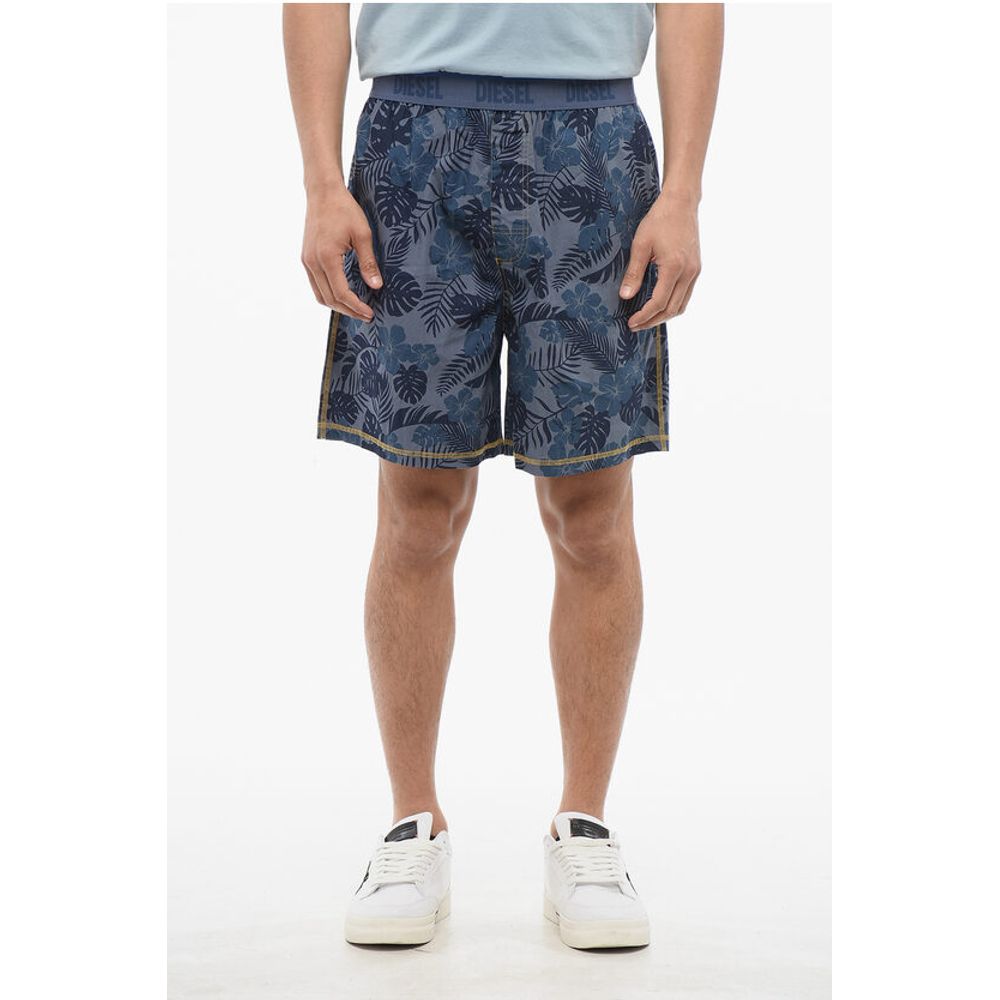 Diesel Plant Motif Lightweight Cotton Shorts with Logoed Elastic Ba