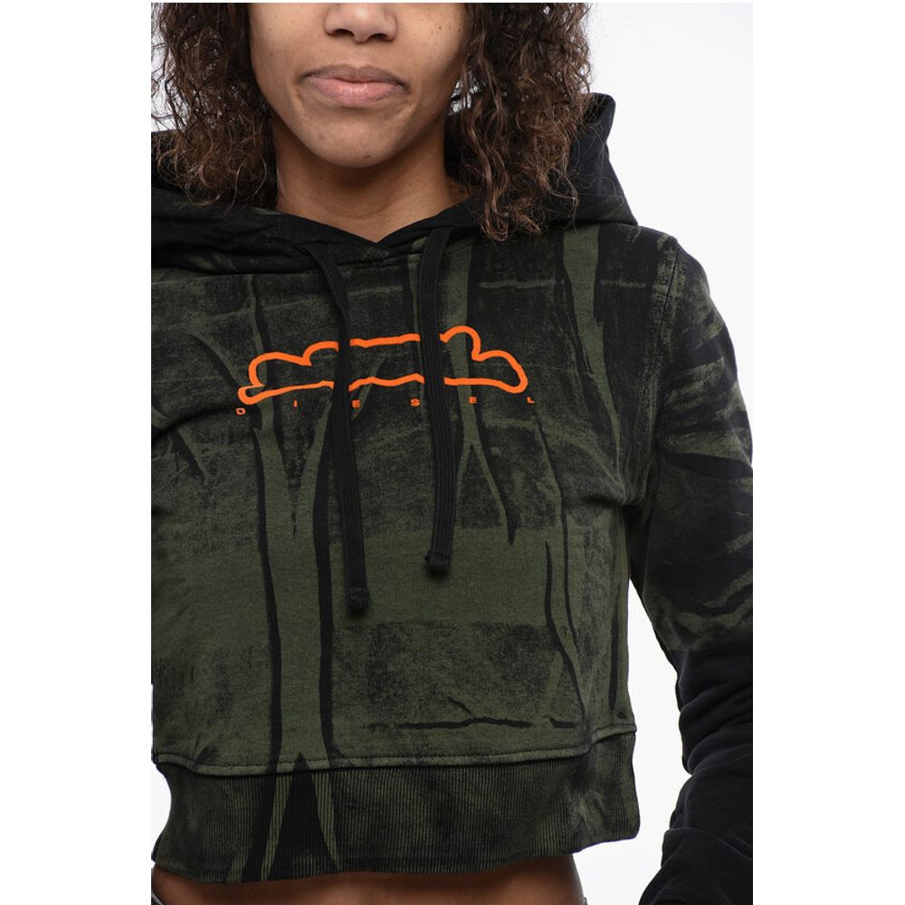 Diesel RED TAG Brushed Cotton F-SLIMMY Cropped Hoodie with Flocked