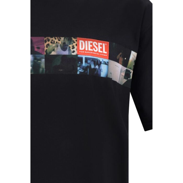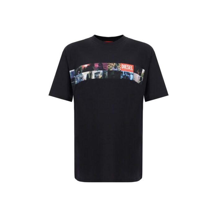 Cotton T-Shirt by Diesel, ribbed crew neck, iconic contrasting brand monogram on front and back, monochrome pattern, regular fit.