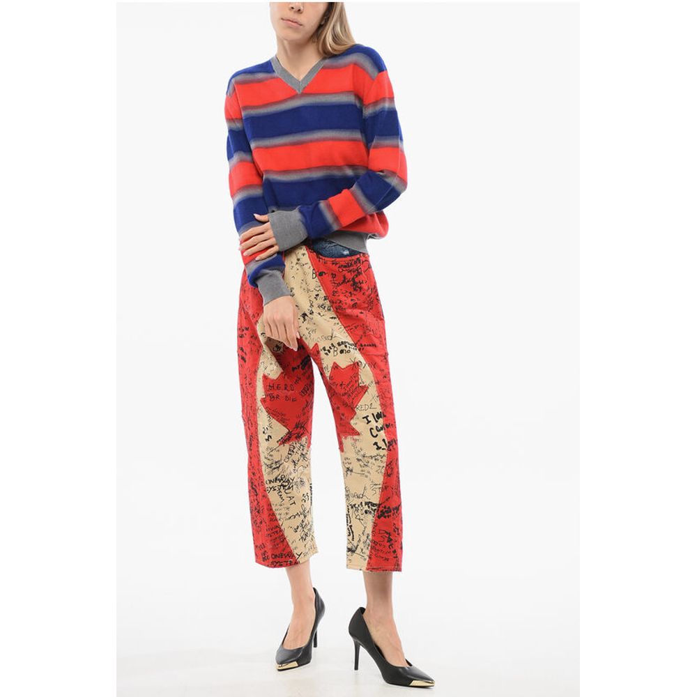 Dsquared² Balanced Stripe Wool Blend Sweater with V Neck