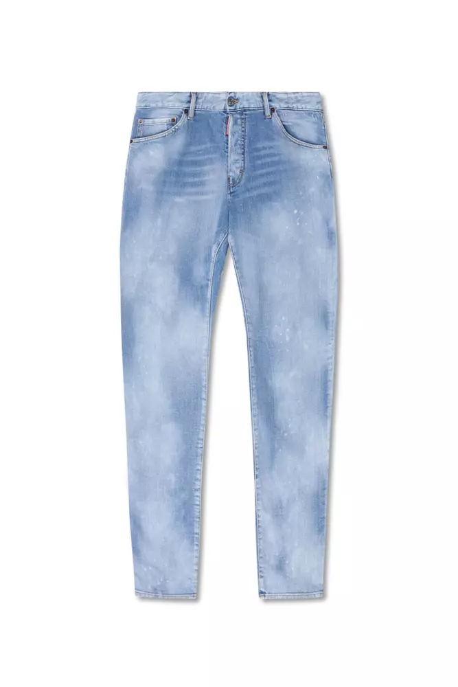 Elevate your denim game with the unmistakable flair of Dsquared²’s ‘Cool Guy’ jeans. These light blue masterpieces come boldly splattered with white paint for that edgy, urban vibe. Crafted with a hint of elastane, they provide the perfect balance of comfort and style, tapering gracefully to frame your every move. Accented with the iconic red logo patch, they’re a statement in craftsmanship and cool. Button up and strut out with confidence in Dsquared².