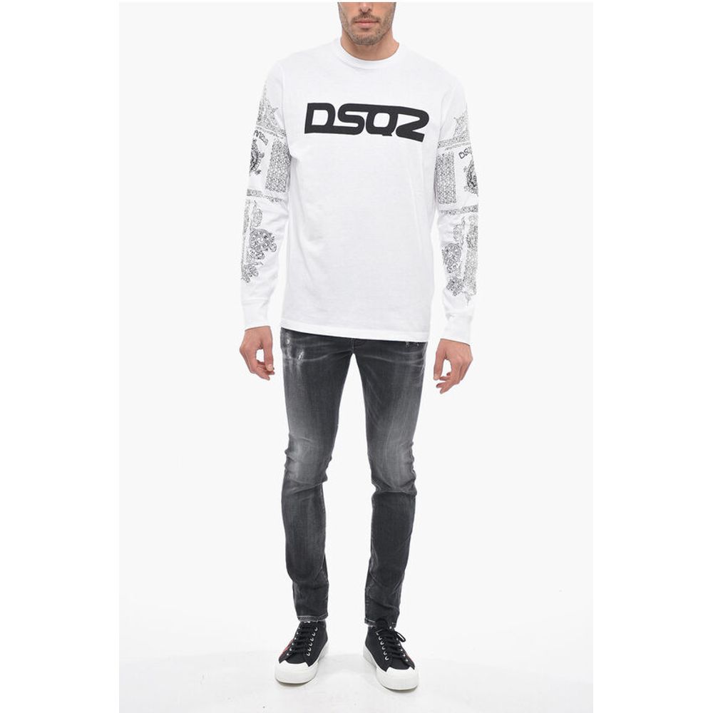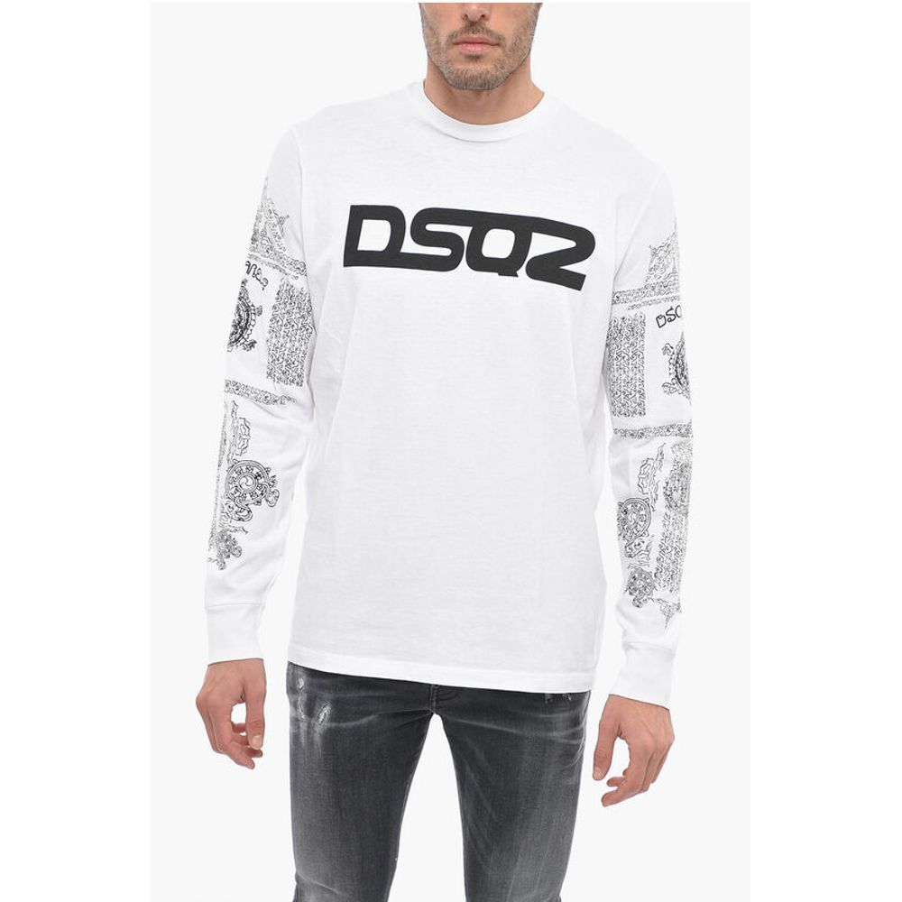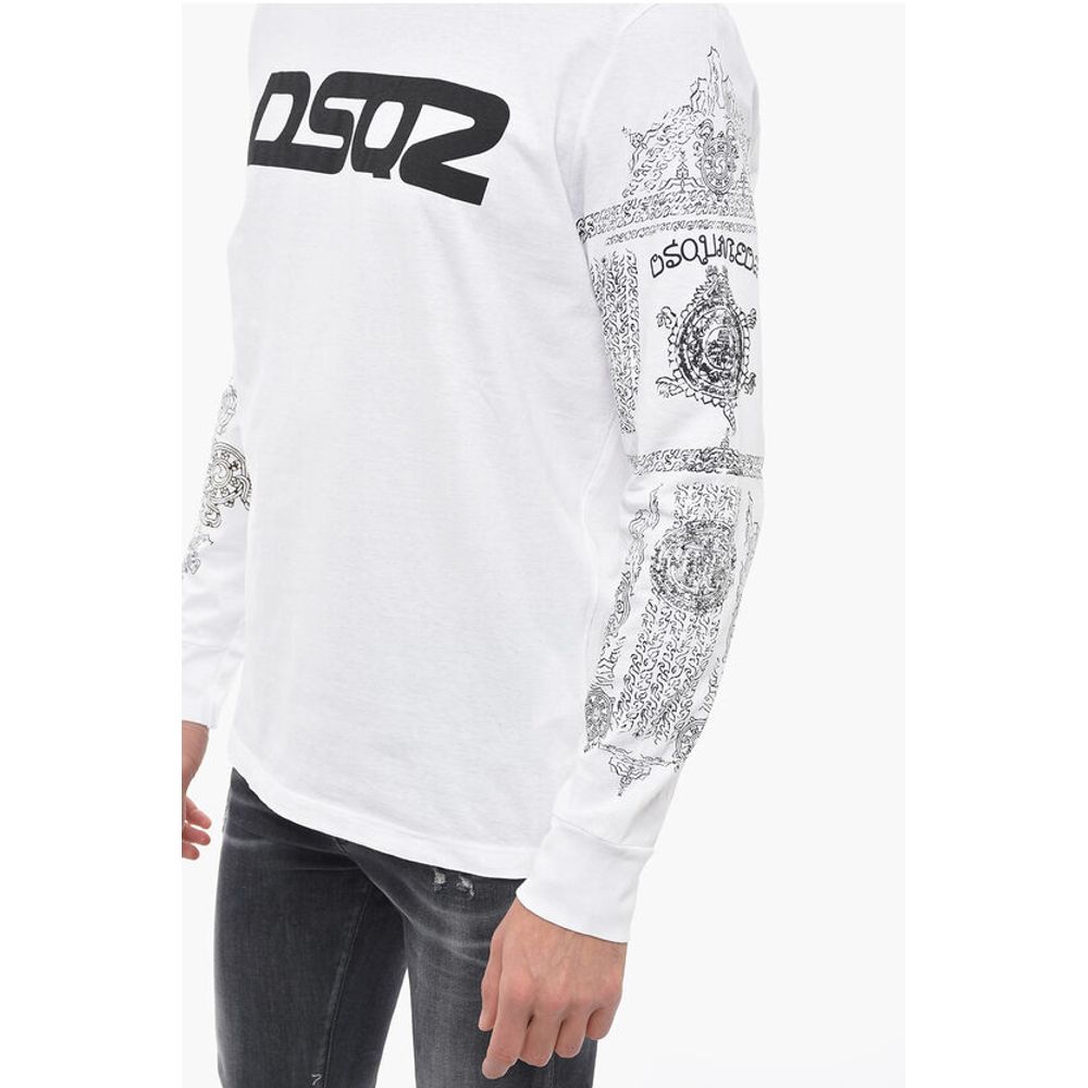 Dsquared² Crew Neck Cotton T-Shirt with Printed Sleeves