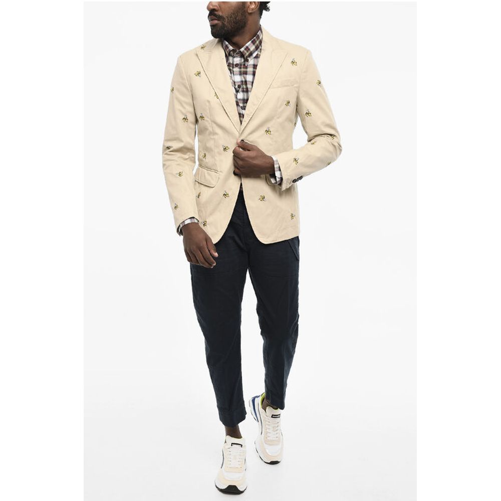 Dsquared² Embroidered Cotton Twill 2 Buttons with Flap Pockets