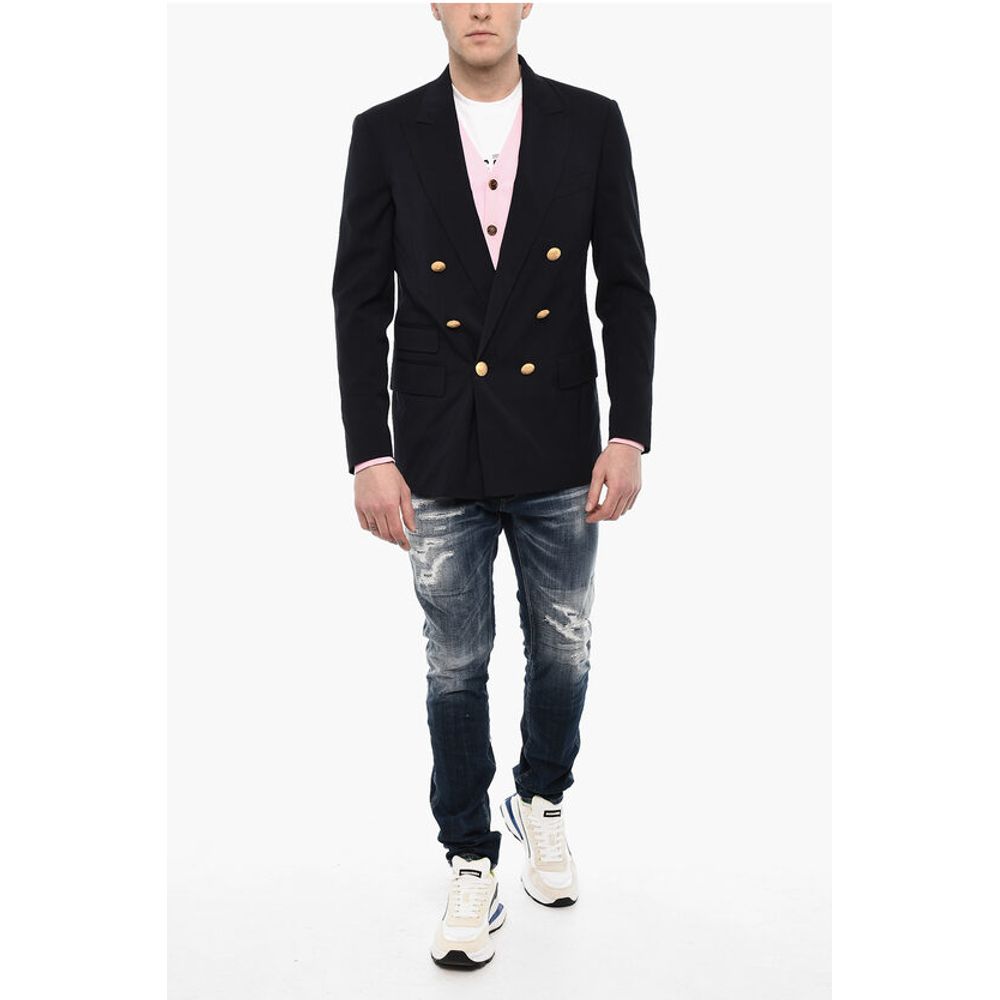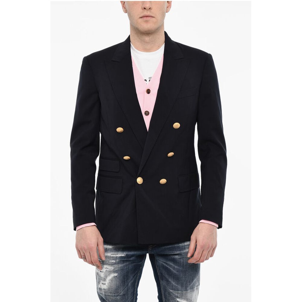 Dsquared² Flap Pockets Double Breasted Blazer with Golden Effect Butto