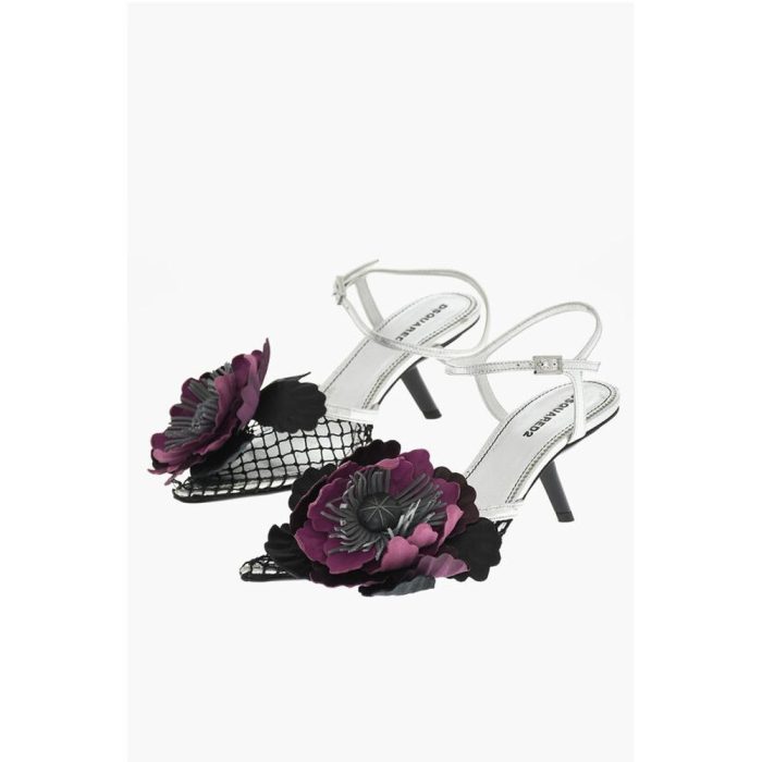 Dsquared² Leather GOTHIC FLOWER Sandals With Mesh