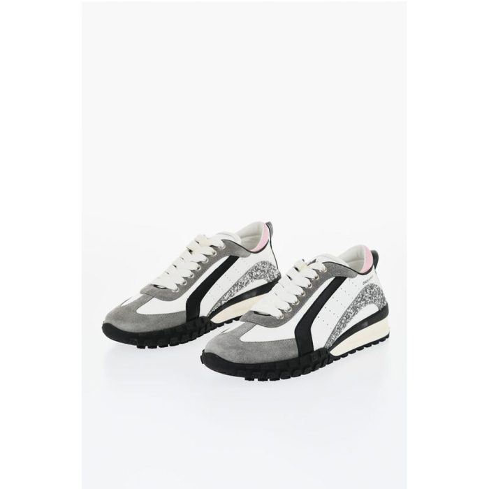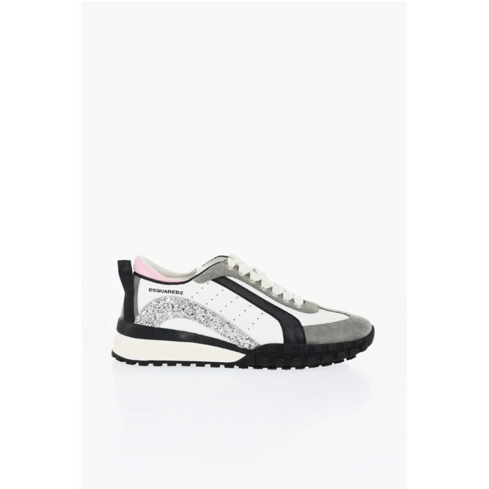 Dsquared² LEGEND Suede and Leather Sneakers with Glittered Detail