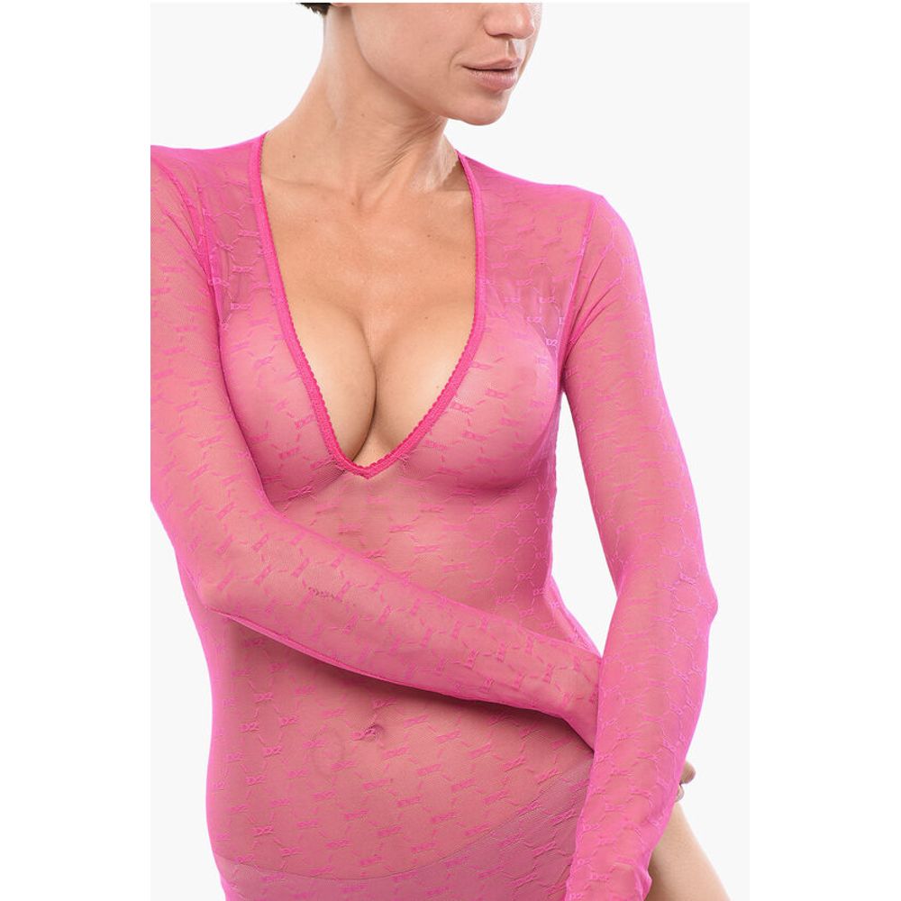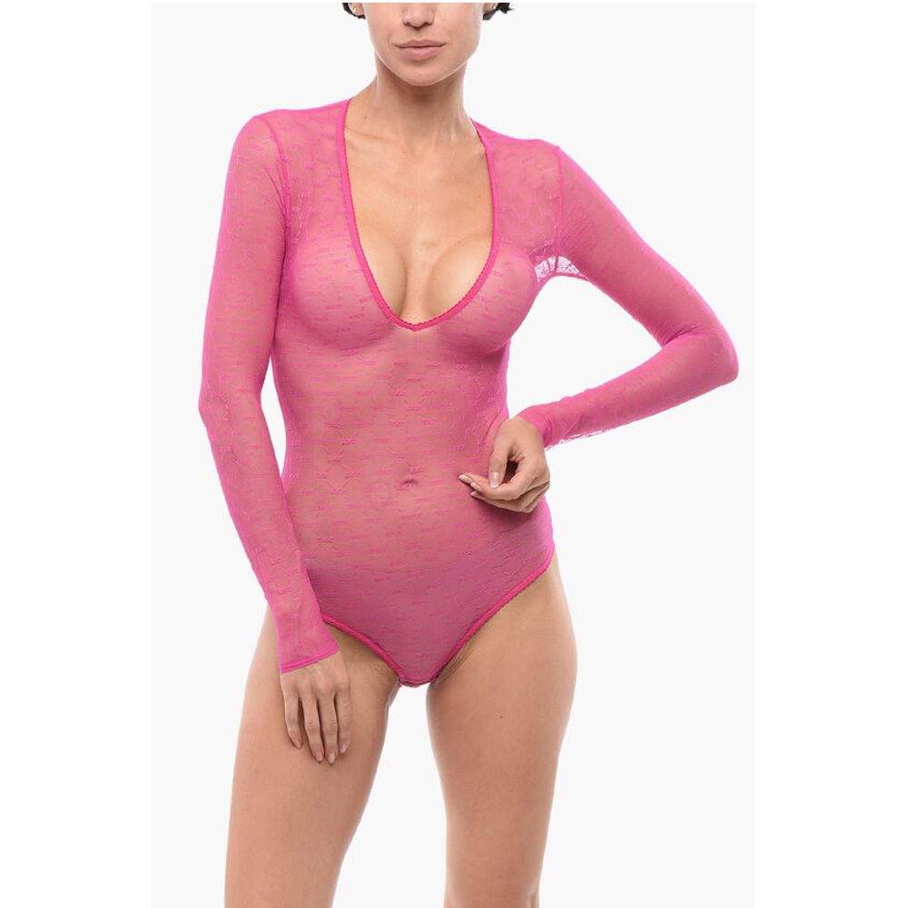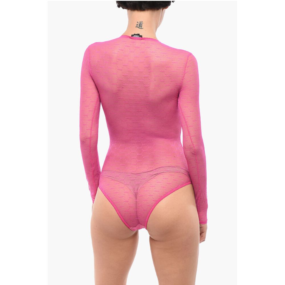 Dsquared² Long-sleeved Monogram Lace Bodysuit