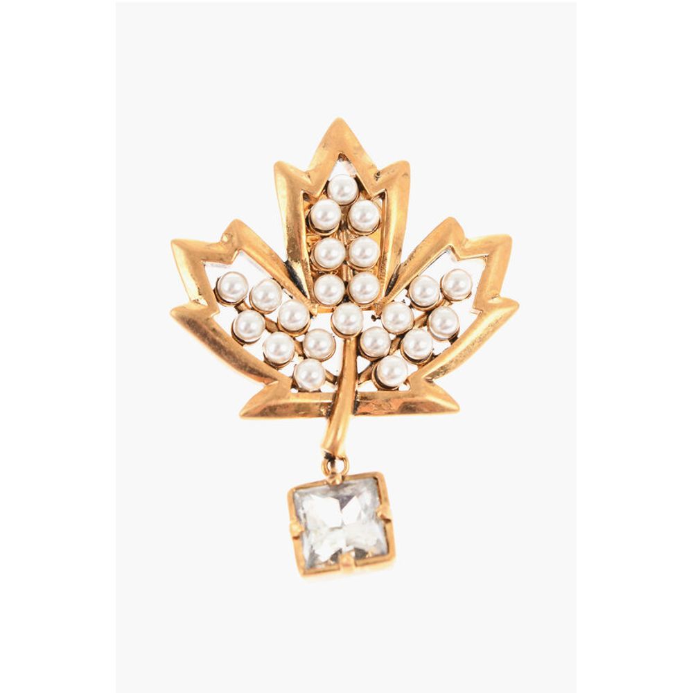Dsquared² Metal CANADIAN LEAF Pin Embellished with Beads