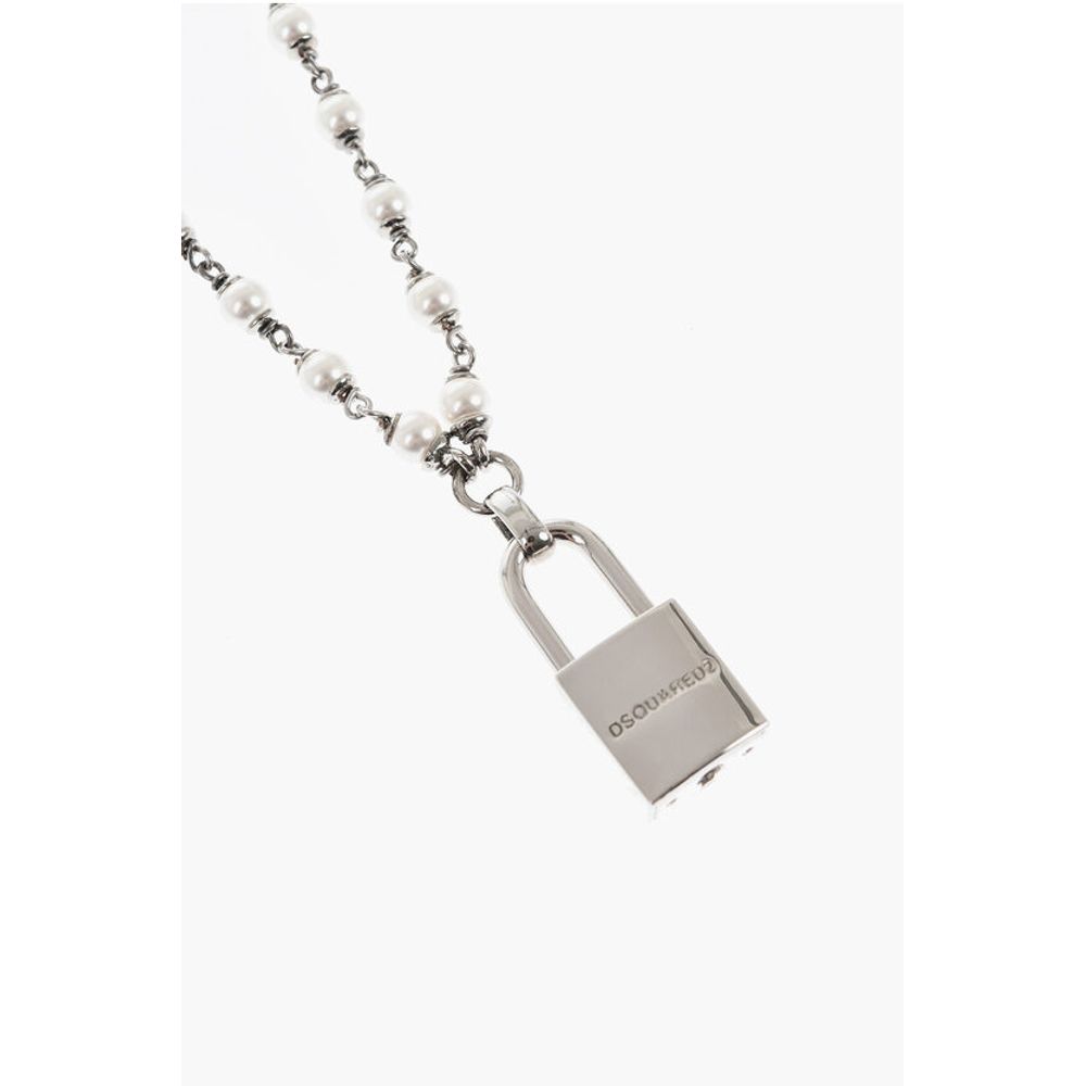 Dsquared² Metal LOCK YOURSELF Necklace with Lock-Shaped Pendant