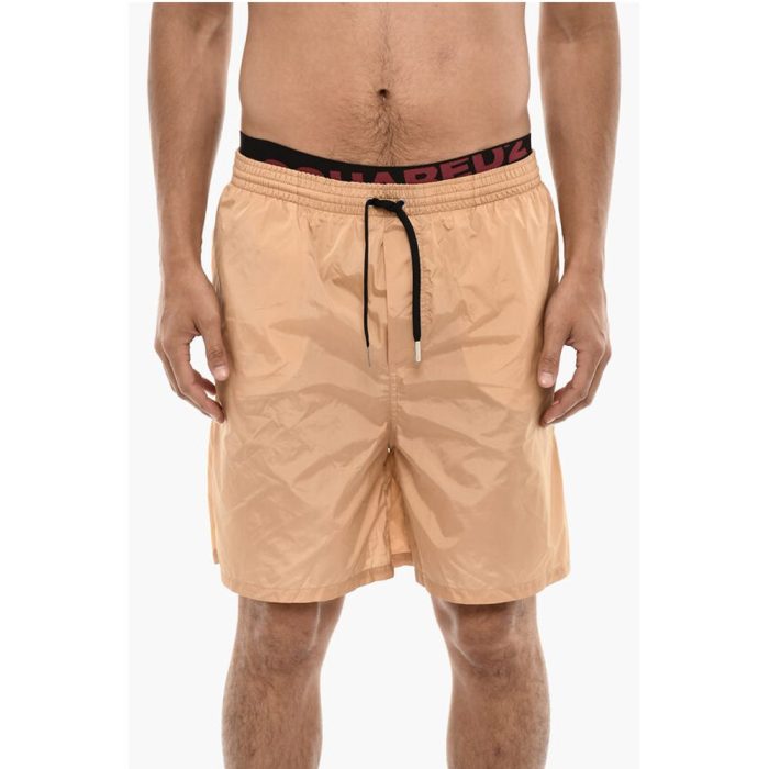 Dsquared² Slip Swimshorts With Logoed Contrasting Waistband