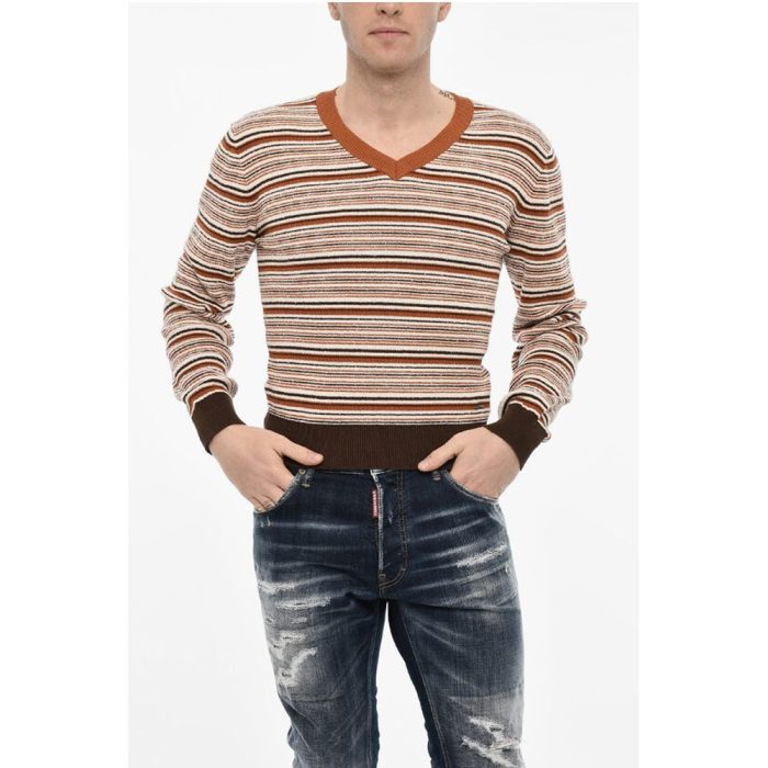 Be the first to review “Dsquared² Striped Cotton Blend V-neck Sweater”