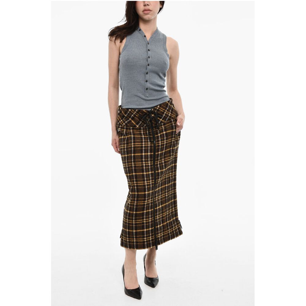 Dsquared² Tartan Motif Longuette Wool Skirt With Size Zips