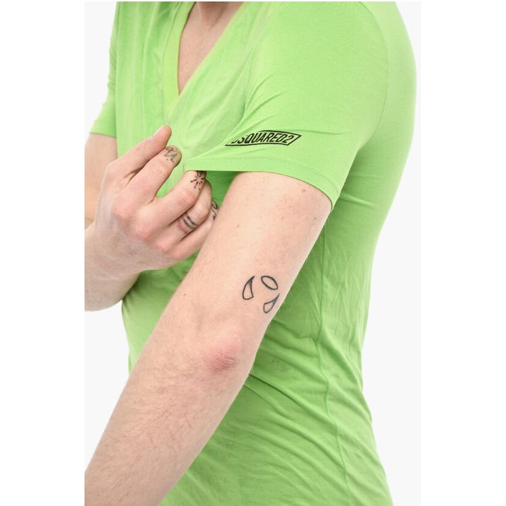 Dsquared² V-Neck Underwear T-shirt with Logo Print