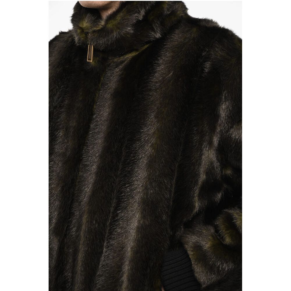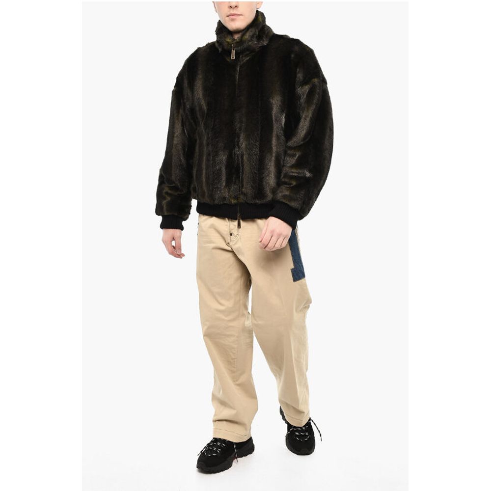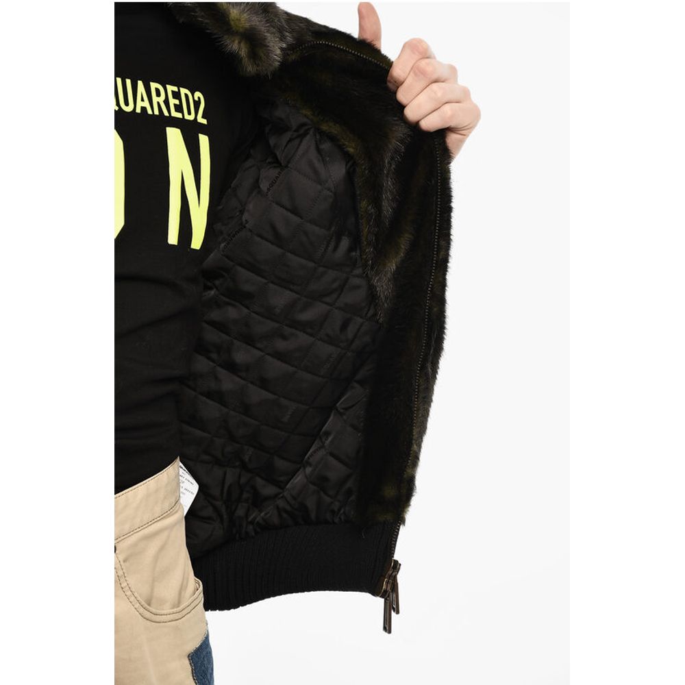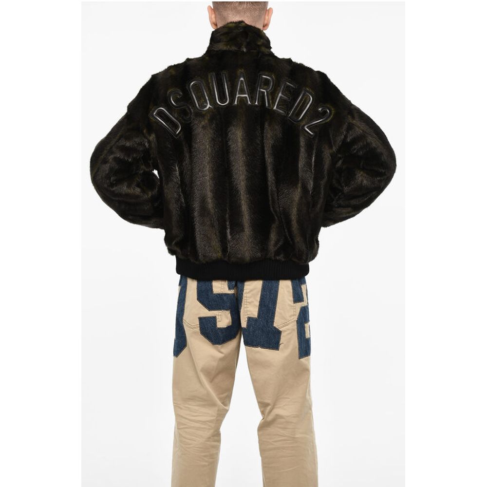 Dsquared² Vegan Fur Bomber With Faux-Leather Logo