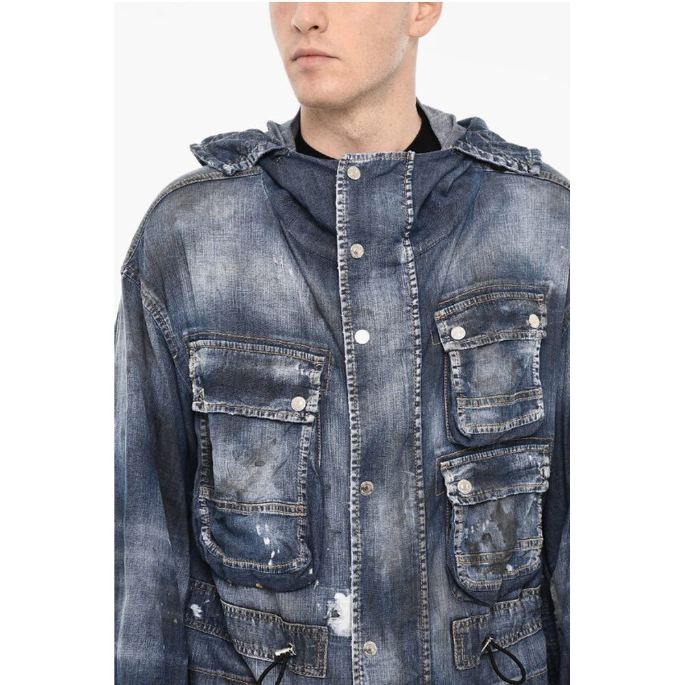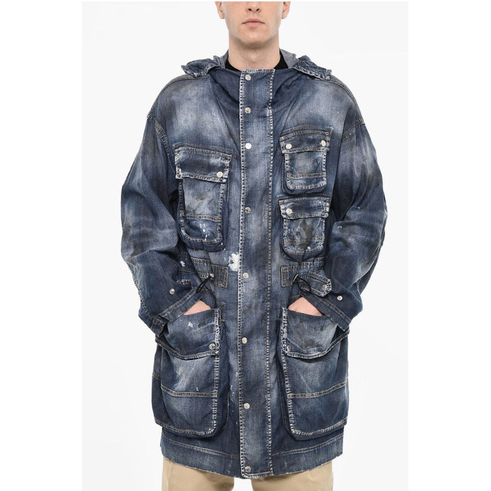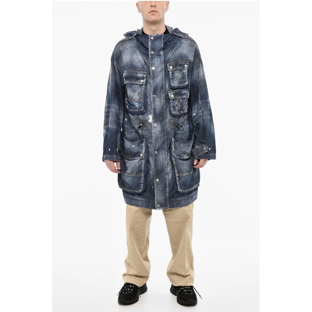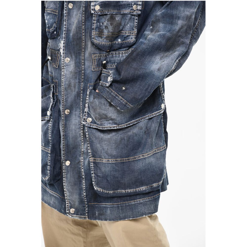 Dsquared² Vintage Effect Denim Parka With Utility Pockets