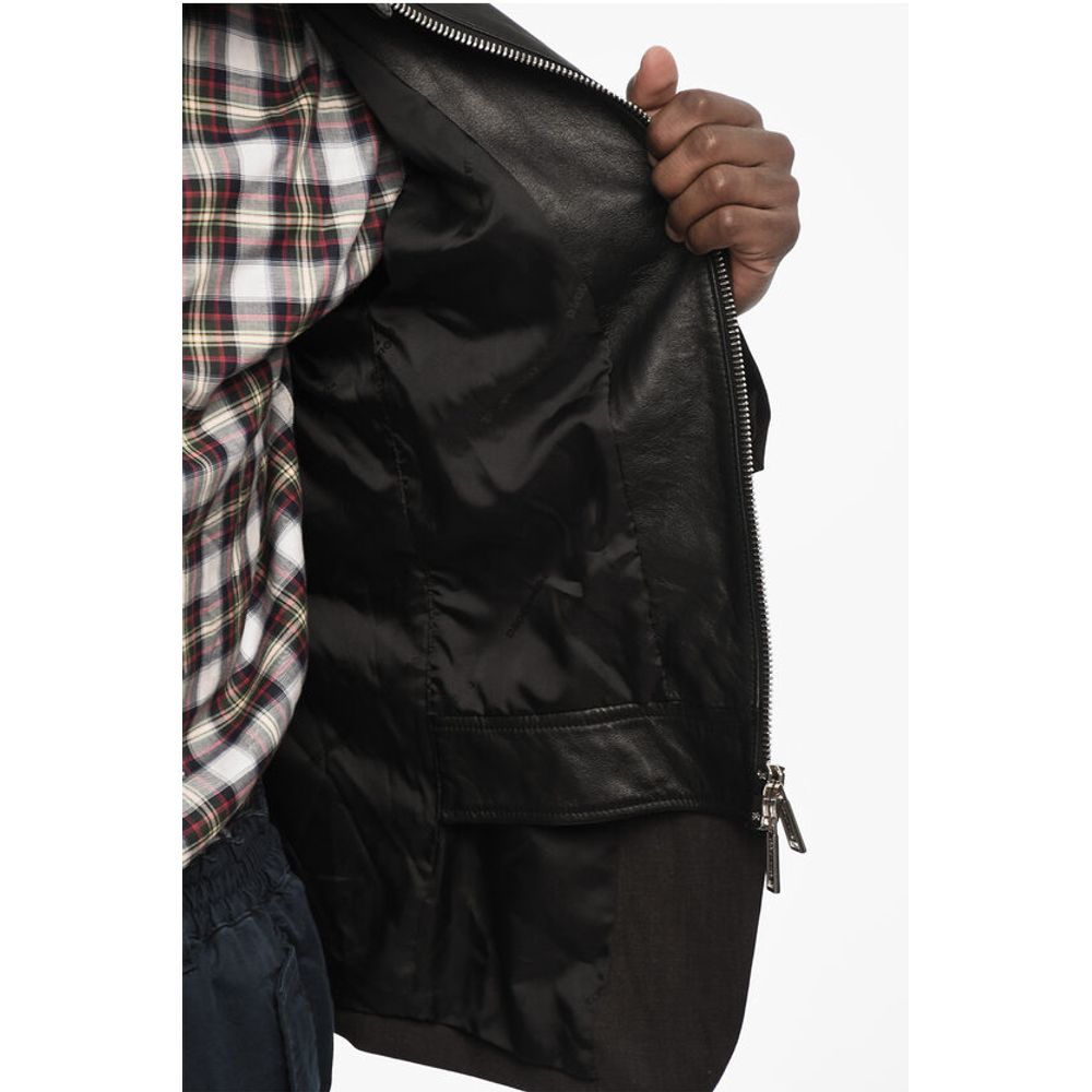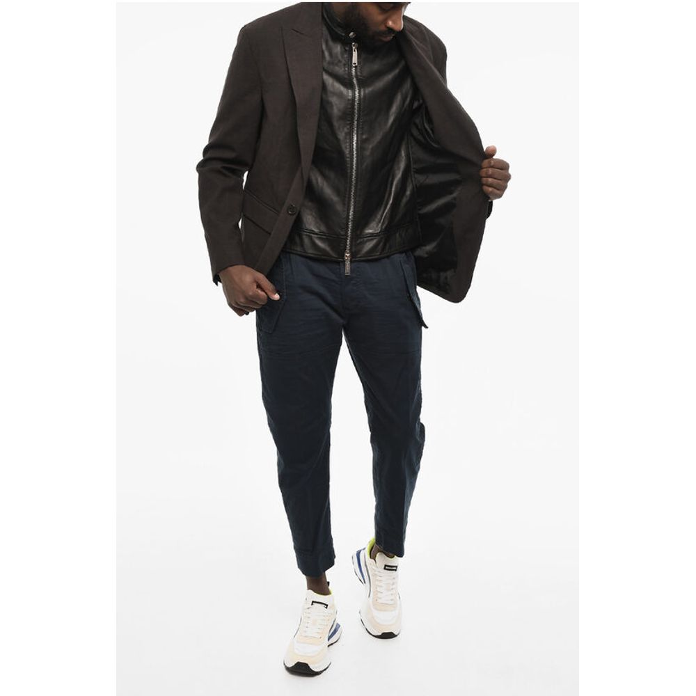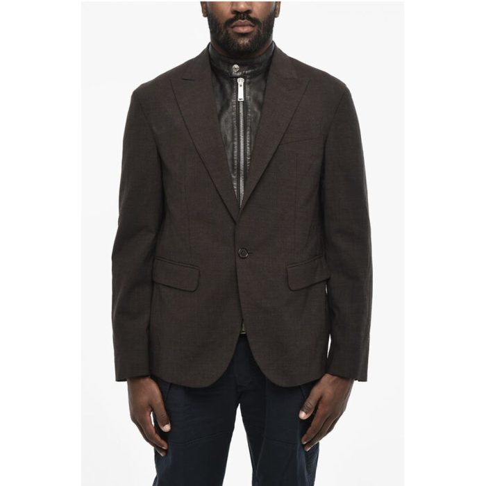 Dsquared² Virgin Wool Blend 1 Buttons Blazer with Faux Leather Details