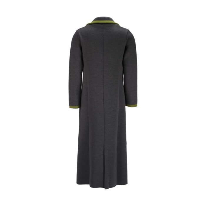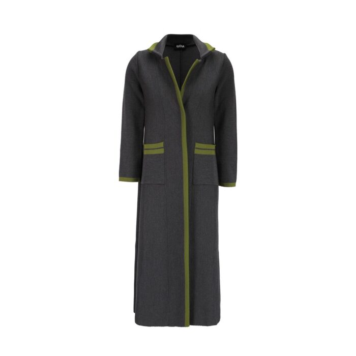 Merino Wool Coat by Ella, classic collar, front button closure, two welt pockets on front, back slit, monochrome pattern, regular fit.