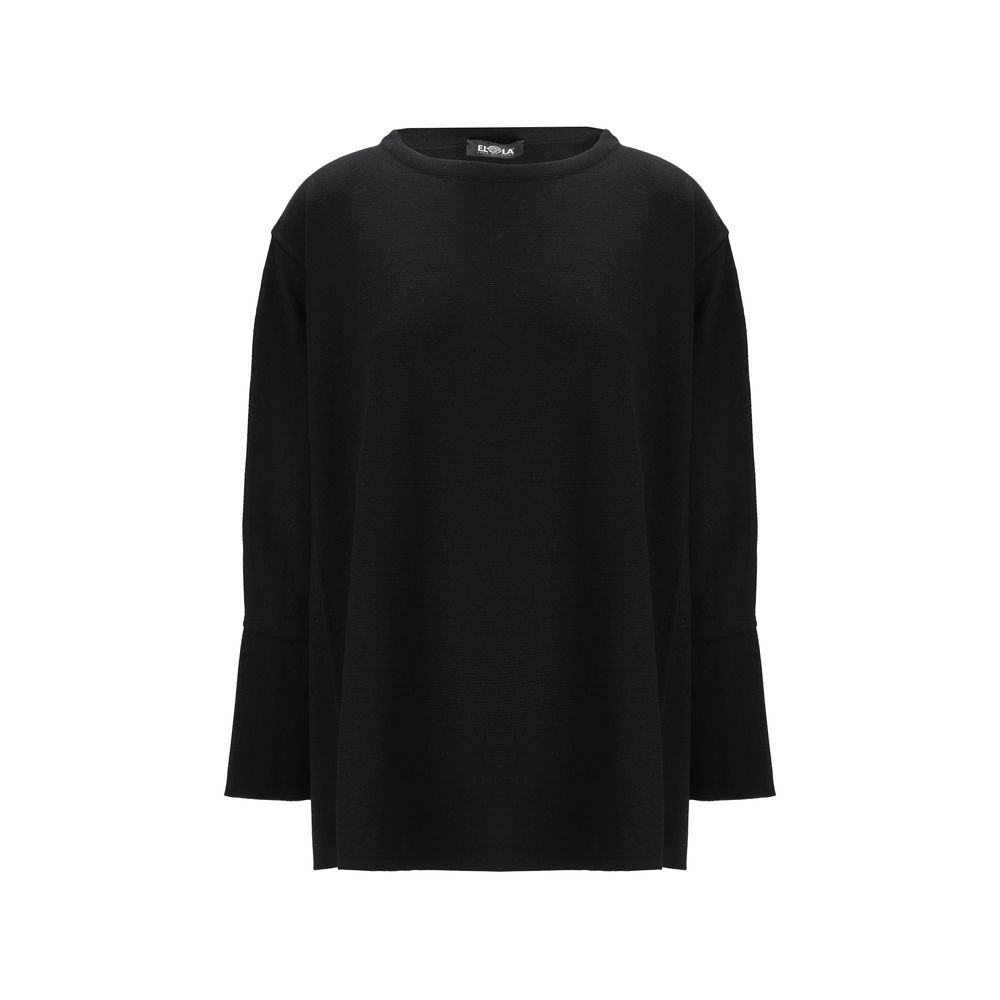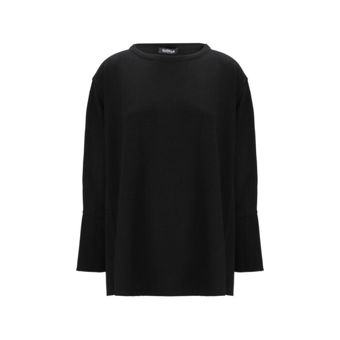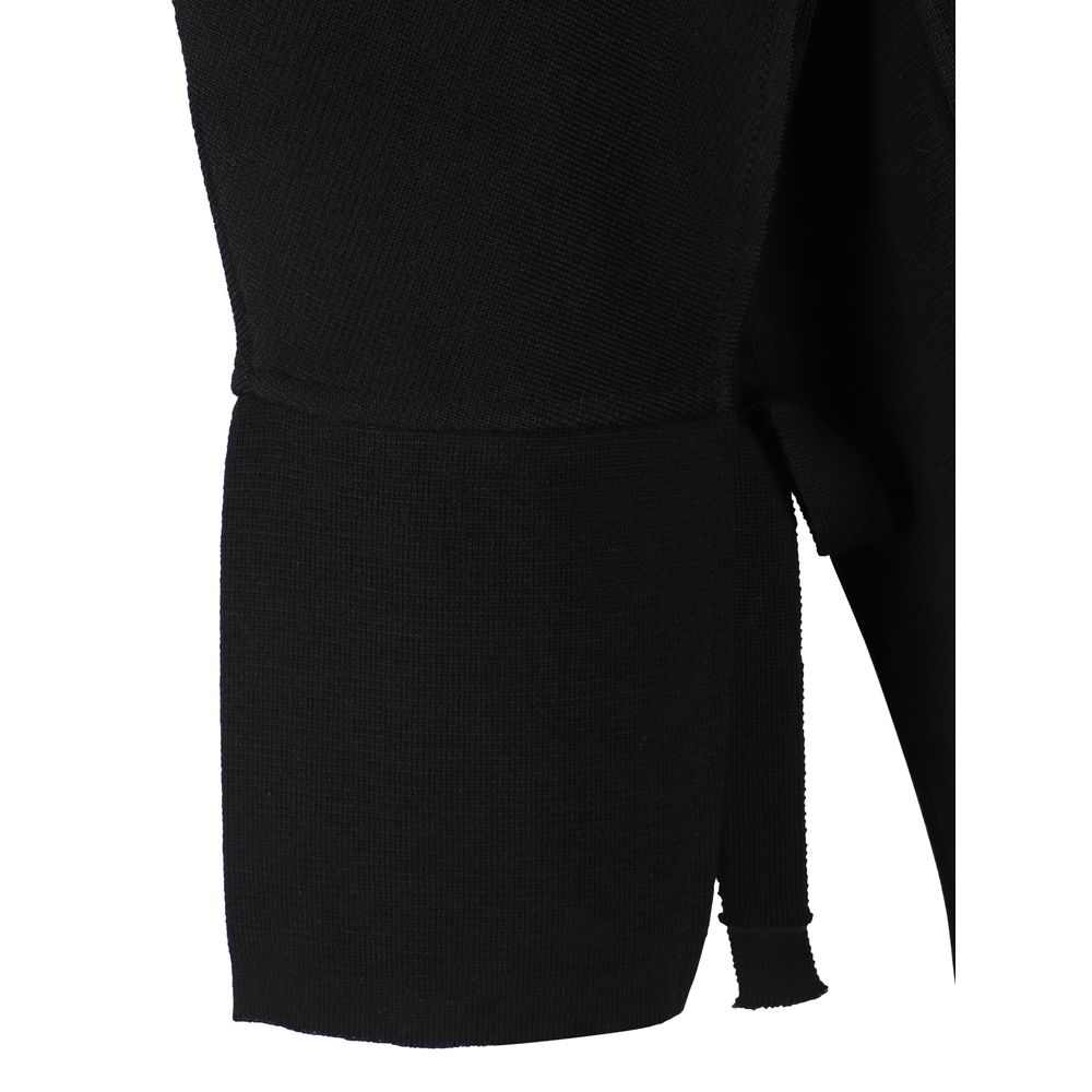 Merino Wool Poncho by Ella, crew neck, open sleeves on inside perimeter with tie-tie, monochrome pattern.
