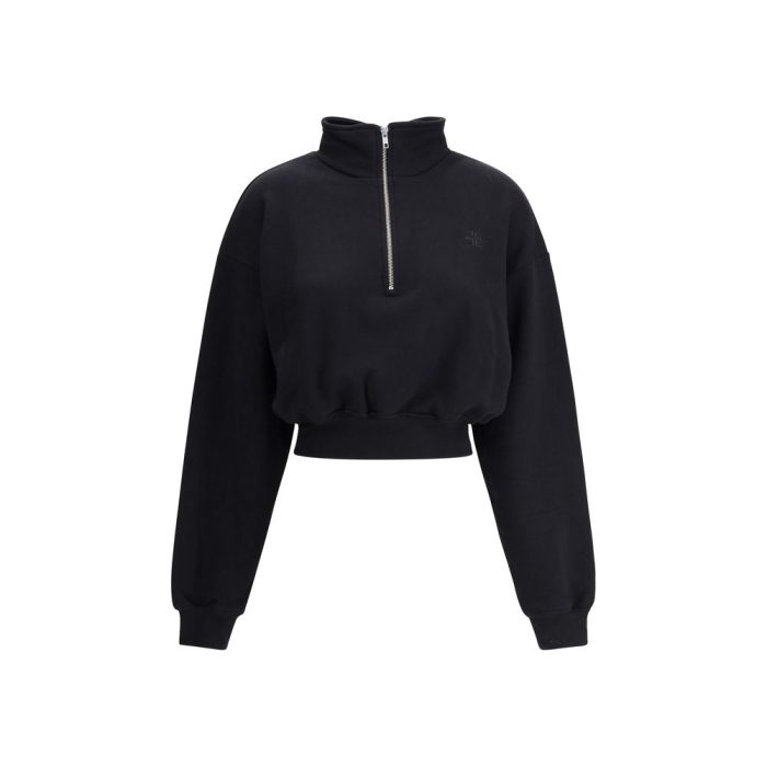 Éterne’s Cropped Sweatshirt is a modern and versatile garment, perfect for a sporty yet stylish look. The front half-bust zipper closure allows for convenient adjustment and a dynamic touch to the design. The high neck offers comfort and protection, while the ribbed hem and cuffs ensure a defined and comfortable fit. The cropped cut adds a trendy element, making it ideal to pair with high-waisted pants or skirts.
