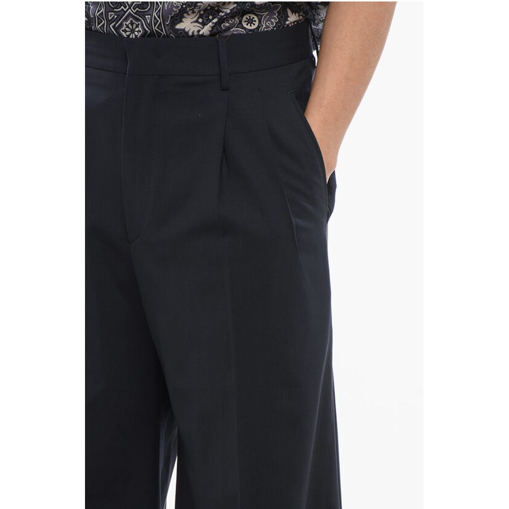 Etro Double-pleated Wool Blend Pants with Belt Loops
