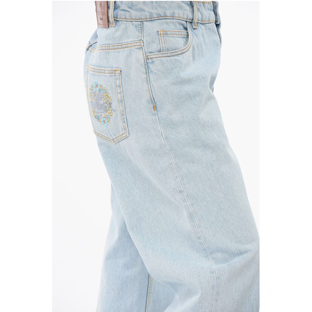 Etro Light Washed Mom Fit Denims with Embroideries 25cm