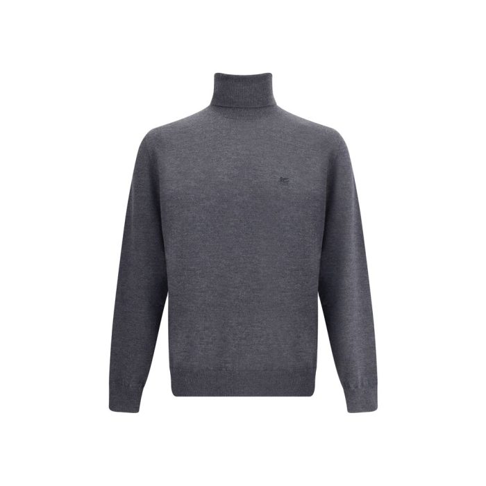 Wool turtleneck Sweater by Etro features a ribbed high neck that ensures warmth and comfort. The garment features a tone-on-tone embroidered Pegasus logo on the front, a refined detail that recalls the brand’s distinctive identity. Completing the design are ribbed cuffs and hem for a snug, defined fit that is ideal for a sleek, contemporary look.