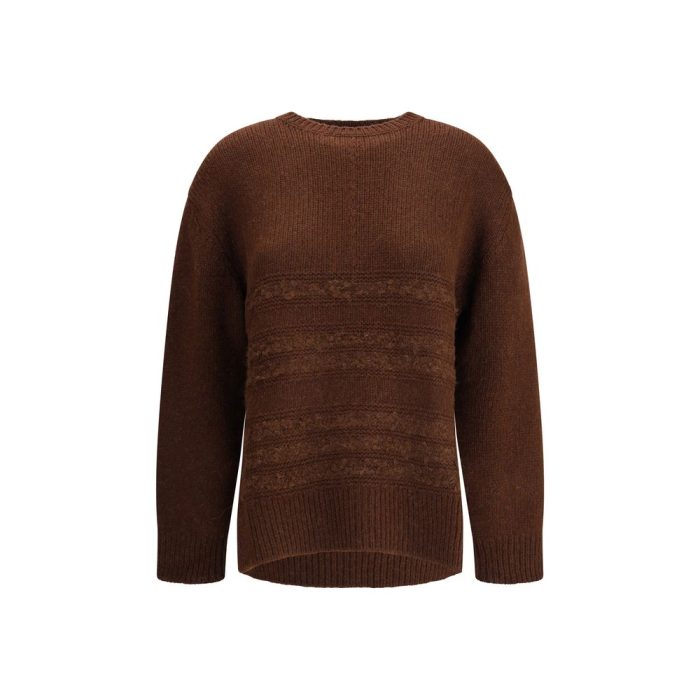 Fabiana Filippi’s Camel Hair Sweater is a fine garment with a comfortable fit, designed for relaxed elegance. It features a crew neck, long sleeves and striped details in contrasting bouclĂ© yarn that add a graphic and contemporary touch. A ribbed knit collar, cuffs and hem complete the design.