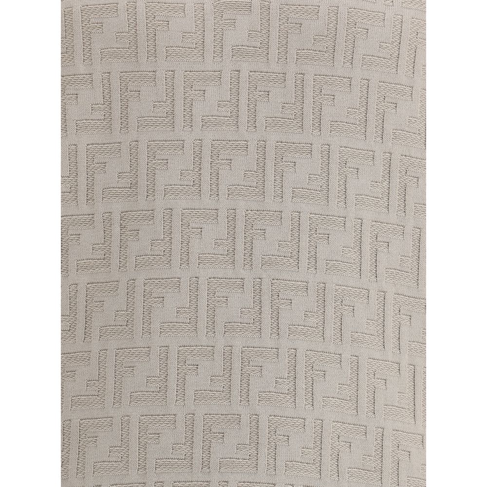 Cotton Polo Shirt by Fendi features a fine knit weave with iconic embossed FF pattern. The classic collar and front snap-button closure lend an elegant and contemporary touch. The ribbed hem completes the garment, ensuring a defined fit and distinctive style.