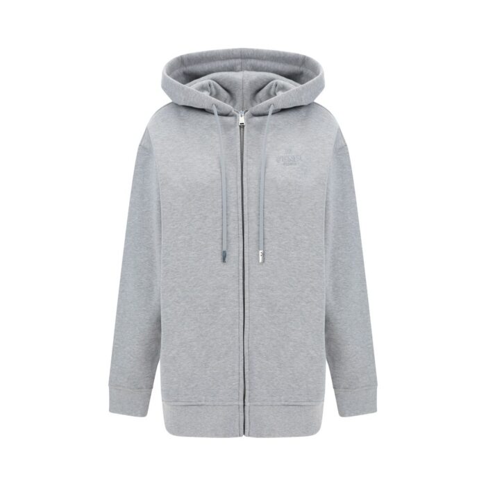Cotton Hoodie by Fendi features hood with adjustable drawstring, ribbed cuffs, ribbed hem, front zipper closure, side slits, contrasting iconic brand monogram on front, regular fit.