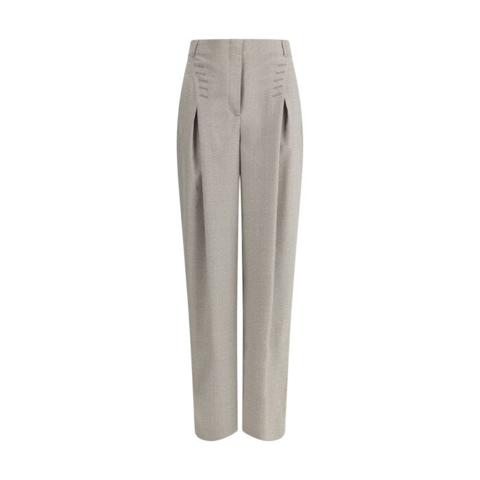 Fendi’s pied-de-poule wool Pants are a timelessly elegant piece, perfect for a sophisticated and fashionable look. Featuring a front zipper and hook-and-eye closure, they offer a comfortable and secure fit. Belt loops at the waist allow you to add a personal touch with an accessory, while the two side welt pockets and back welt pocket provide practicality without compromising aesthetics. The houndstooth pattern lends a classic and chic touch, making these pants ideal for an elegant daytime outfit or more formal occasions.