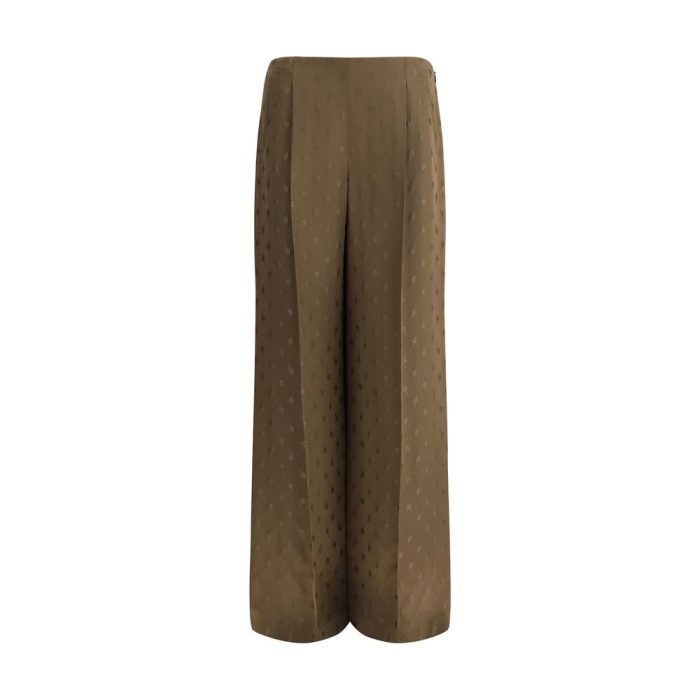 Fendi’s silk Pants are an elegant and sophisticated piece, perfect for those seeking a refined and contemporary look. The side zip fastening ensures a clean and slim fit, while the two side welt pockets add a practical touch without compromising aesthetics. The wide leg gives a fluid and comfortable silhouette, while the delicate tone-on-tone flower pattern enriches the design with a discreet and romantic detail. Perfect for elegant occasions or for a more casual-chic look, these silk trousers are a true must-have for those who love quality garments and timeless style.
