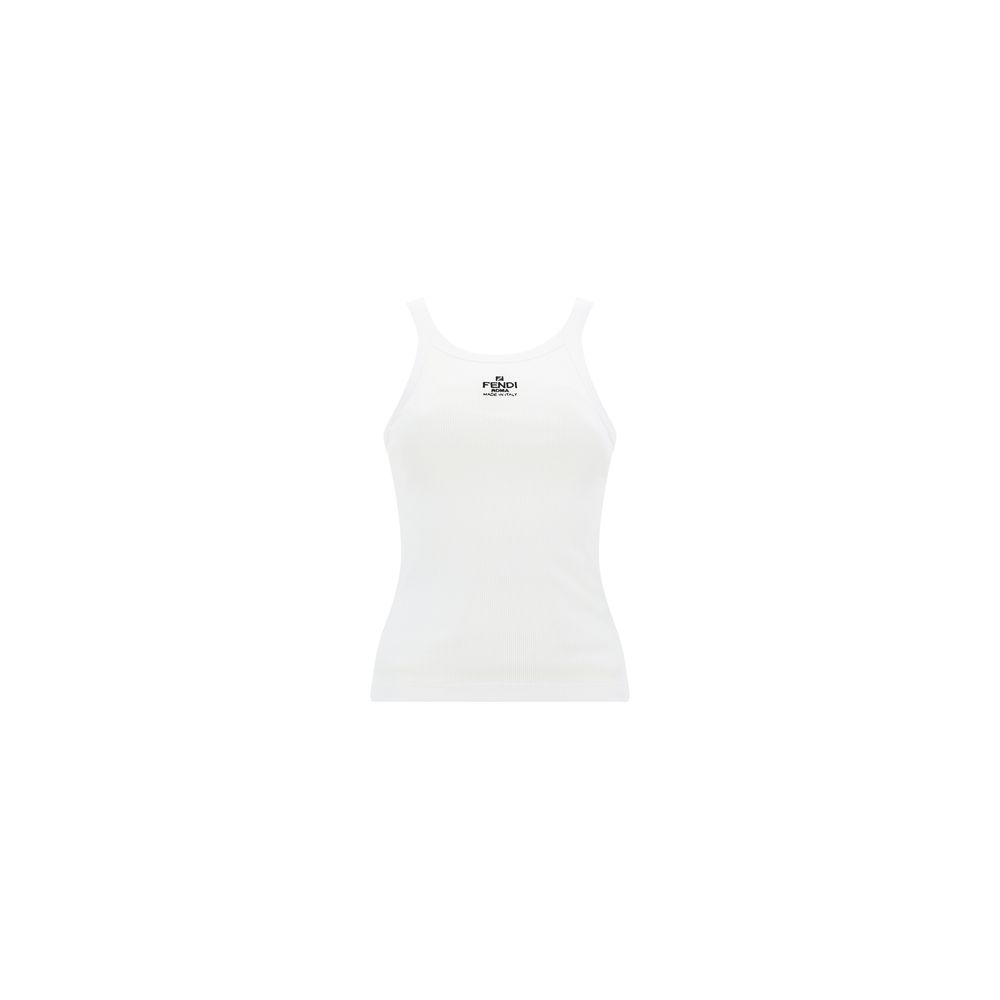 Cotton Top by Fendi, ribbed shoulder straps, iconic brand monogram embroidered in contrasting colour on the front, monochrome pattern.